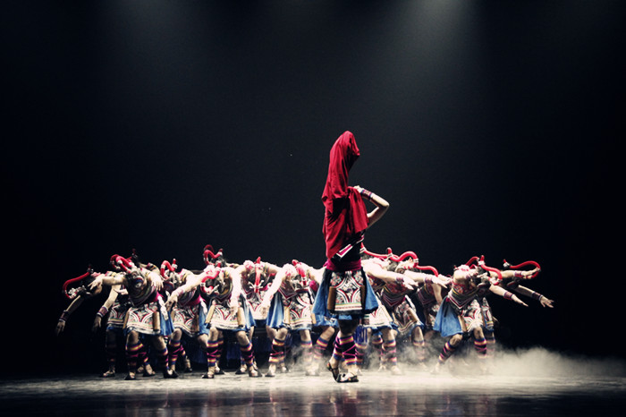 作品編排得極具畬族文化特色,別出心裁地在舞蹈演員手臂、腿部綁了六塊竹板。舞蹈一開(kāi)場(chǎng),在完全沒(méi)有音樂(lè)和燈光效果的狀態(tài)下,竹板敲擊傳出的節(jié)拍聲引人入勝。而舞蹈的最后,一位披著紅蓋頭的少女在臺(tái)上舞動(dòng),展現(xiàn)了對(duì)幸福生活的向往。音樂(lè)停止,燈光暗下,竹板所發(fā)出的節(jié)拍聲依舊繼續(xù),寓意生命的延續(xù)。