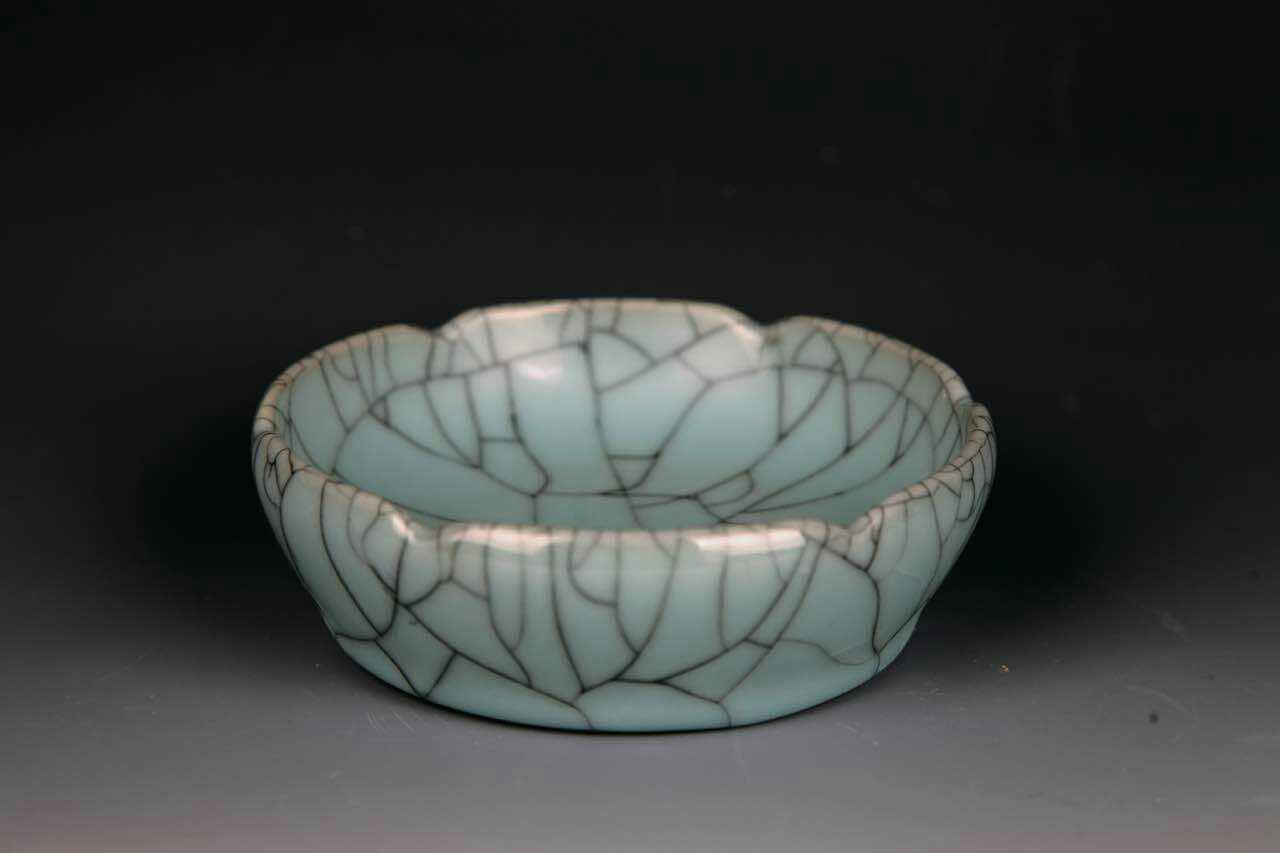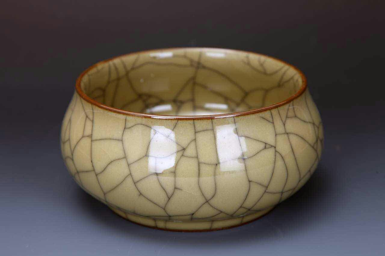 楊勇每天雜事眾多,晚上忙完依然要直奔工作室,釉料的排列組合千變?nèi)f化,每次這樣忙到了凌晨,才是楊勇真正滿足睡下的時刻。當一個新的釉料配方出來,他都要在一個小瓷片上簡單描摹,批注編號。這種小瓷片,景德鎮(zhèn)人俗稱“照子”,也就是我們說的小樣。從業(yè)三十三年,楊勇的“照子”也燒制了幾十萬個。他說身邊的朋友抽煙打牌是癮,他這也是癮,每次成功復燒了一種古瓷器,或者創(chuàng)新了一種新釉料,都能帶給他無上的精神享受。也就是在今年,楊勇完成了三個突破:一個是傳承,將失傳兩百多年的哥窯魚籽紋復燒成功;兩個是創(chuàng)新,在高溫電光釉和紫金釉(古銅釉)的基礎(chǔ)上創(chuàng)新了古銅裂紋釉。說到這個,楊勇顯得很是自豪。