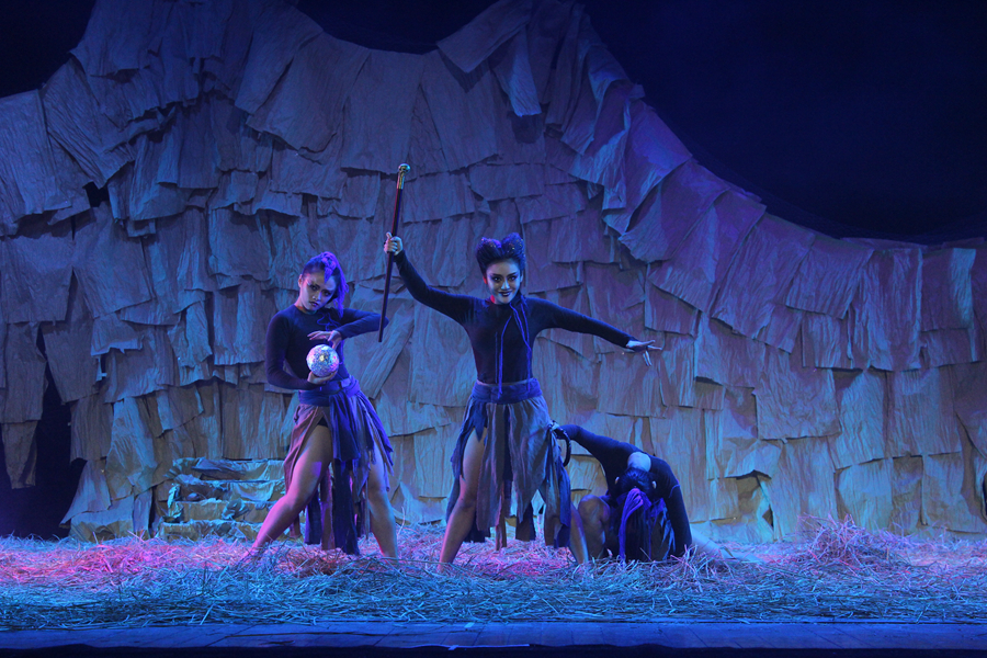 舞劇《布蘭詩(shī)歌》由舞蹈系教師關(guān)一毅任總導(dǎo)演,共分《安詳?shù)耐恋亍贰度齻(gè)女巫》《勝利的號(hào)角》三幕,以“苦難 抗?fàn)?/span> 光明 和平 人性 信仰” 為主題,講述了和平部落的美麗女神為保護(hù)子民奮身起義反抗女巫,最終讓苦難中的人民從黑暗中覺(jué)醒的雄偉故事。整場(chǎng)舞劇場(chǎng)面恢宏壯麗,情節(jié)跌宕起伏,人物形象豐富多變,既有象征正義的白衣女神,也有代表邪惡的黑衣女巫。