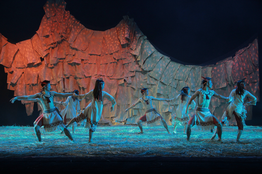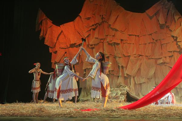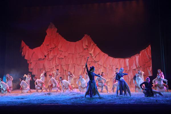 舞劇《布蘭詩歌》由舞蹈系教師關(guān)一毅任總導(dǎo)演,共分《安詳?shù)耐恋亍贰度齻(gè)女巫》《勝利的號角》三幕,以“苦難 抗?fàn)?/span> 光明 和平 人性 信仰” 為主題,講述了和平部落的美麗女神為保護(hù)子民奮身起義反抗女巫,最終讓苦難中的人民從黑暗中覺醒的雄偉故事。整場舞劇場面恢宏壯麗,情節(jié)跌宕起伏,人物形象豐富多變,既有象征正義的白衣女神,也有代表邪惡的黑衣女巫。