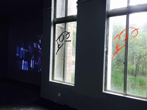 右手邊是昆劇中常見的木頭座椅,套著大紅褂子,褂子上繡的花紋也是極為精細(xì),背后的布景仿的是從前人家的廳堂。轉(zhuǎn)個(gè)身,又看著了一些精美的頭飾和一個(gè)個(gè)樣式各異的座椅,它們后面的墻上掛著兩幅青衣女子的畫像,那帶著妝的美麗模樣叫人好不心生喜歡!墻的中間恰到好處地?cái)[了一塊小銀幕,放映著制作這些小座椅的步驟。