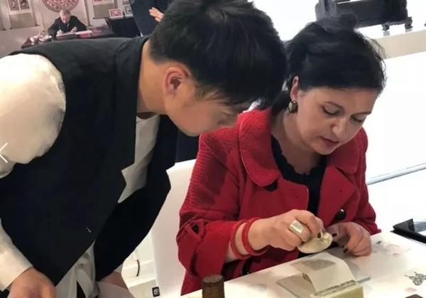 5月9日至5月13日,以“技藝中國(guó)(Amazing China)”為主題的2018倫敦手工藝周中國(guó)展區(qū)在倫敦進(jìn)行展出,葉曉武攜“此見(jiàn)石雕◎篆刻◎設(shè)計(jì)展”亮相倫敦手工藝周,將青田優(yōu)秀的石文化與篆刻技藝帶上了國(guó)際舞臺(tái)。葉曉武創(chuàng)作的青田石雕,和“100個(gè)中華圖騰百家姓”篆刻作品,以及在“技藝中國(guó)”展開(kāi)幕式上現(xiàn)場(chǎng)展示的中國(guó)古法拓印,吸引了眾多英國(guó)觀眾駐足觀看并現(xiàn)場(chǎng)進(jìn)行體驗(yàn),中外多家媒體對(duì)此次盛會(huì)進(jìn)行了報(bào)道,葉曉武的參展作品《鴛鴦?dòng) 返巧稀董h(huán)球時(shí)報(bào)》。