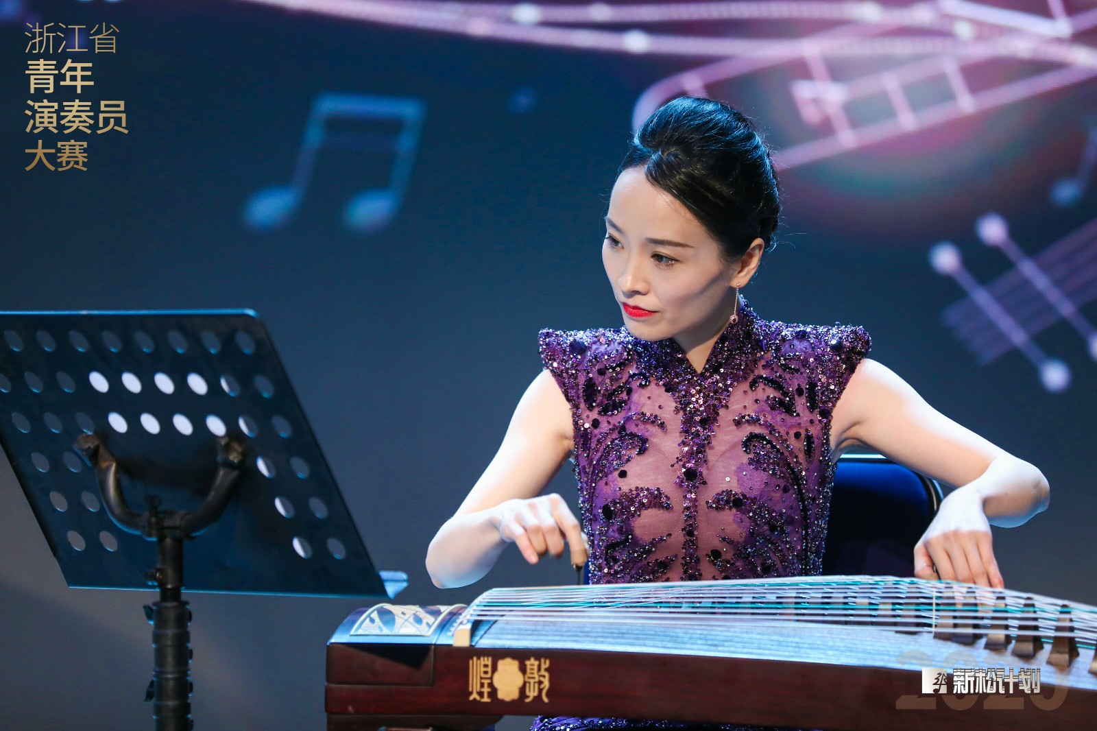 此次比賽參賽曲目都經(jīng)過夏金甌的精心挑選,兼顧了傳統(tǒng)與現(xiàn)代、中國與西方的對比與融合。復(fù)賽曲目是夏金甌向中國音樂學(xué)院青年作曲家陳哲委約的作品《大武》,去年曾在杭州大劇院“春誦夏弦 箏華絕代”夏金甌獨奏音樂會上首次在浙江亮相。決賽曲目夏金甌選擇了浙藝特聘專家、著名作曲家周煜國教授的經(jīng)典箏樂作品《云裳訴》室內(nèi)樂伴奏版本,這首作品如泣如訴的動人旋律感動過每一位聆聽者。周煜國針對此次比賽要求,專門為夏金甌重新在配器上做了調(diào)整,從交響樂版里提取了一些元素,使古箏與室內(nèi)樂這兩種不同文化語境下的聲效,既對比又融合,聽覺更新穎,層次更清晰,一舉在“新松”大賽中獲得一等獎。