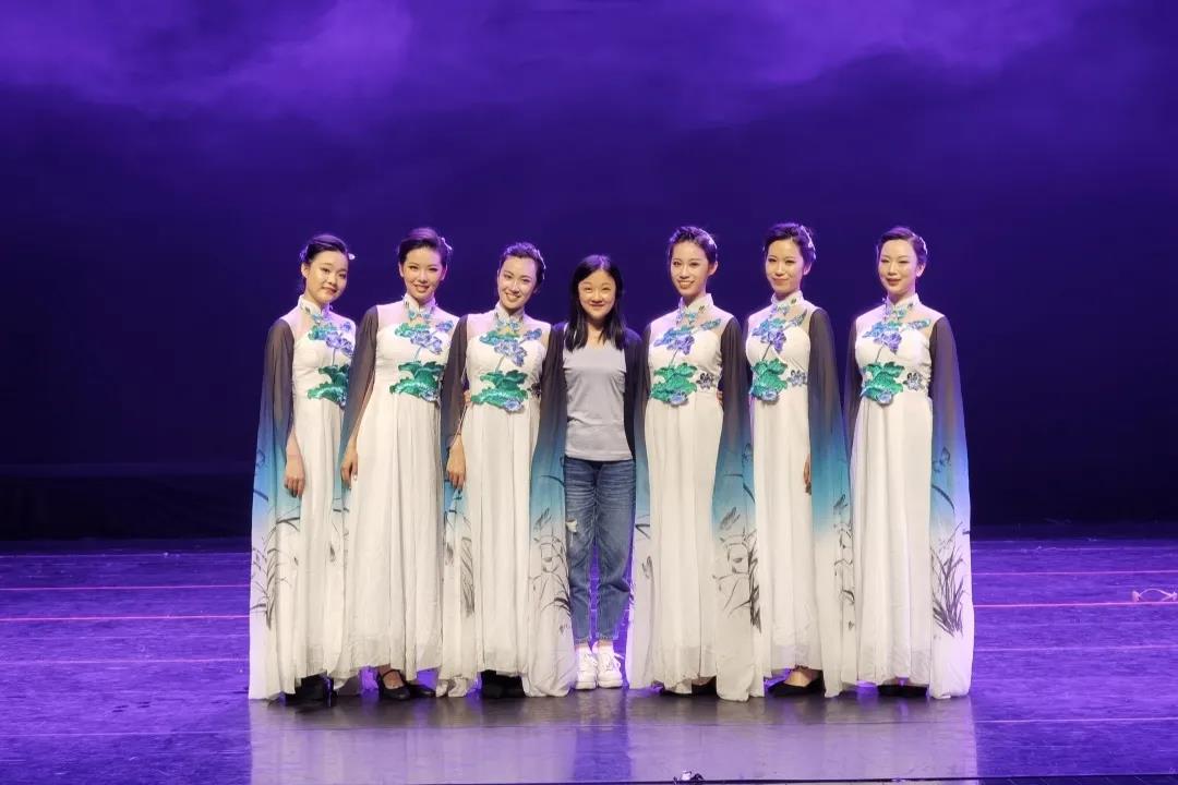 《水印》曲調(diào)柔和婉轉(zhuǎn),歌詞充滿了對水鄉(xiāng)杭州的眷戀,聽起來恰似少女情懷,演繹起來卻十分艱辛,是一首難度很大的歌曲。創(chuàng)作過程中,楊韻與“錦上花”組合的6名女孩都付出了諸多努力。而該作品需要載歌載舞的形態(tài)展示,這又為演繹增添了難度。整部作品的舞蹈編排、形體指導均由歌舞教研室李小菡老師擔任。