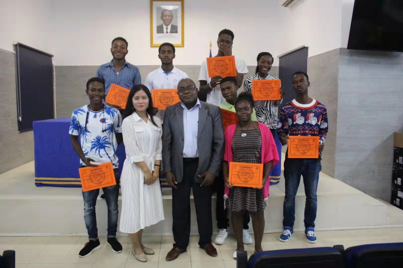 2018年10月至2019年7月這一段時間的朋友圈,正是我一直都想和同學(xué)們分享的一段經(jīng)歷。那年我大學(xué)畢業(yè),通過選拔考試成為了孔子學(xué)院的一名漢語教師志愿者。為了漢語之花在異國他鄉(xiāng)盛開,我不顧家人反對,去了遙遠(yuǎn)的非洲。我永遠(yuǎn)都忘不了2018年10月5日凌晨,飛機(jī)在上海浦東機(jī)場起飛的那一刻,我都不知道自己哪來這么大勇氣。經(jīng)過20多個小時的飛機(jī)路程,我來到了西非的一個國家——赤道幾內(nèi)亞,我在其首都馬拉博工作,馬拉博就在幾內(nèi)亞灣內(nèi)的比奧科島。我在國立大學(xué)和伽伲赫多語種學(xué)校教授漢語,開展文化活動。
