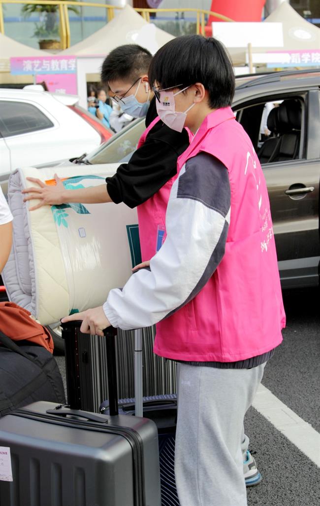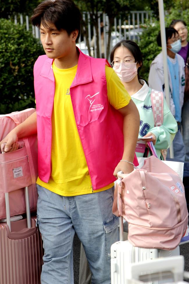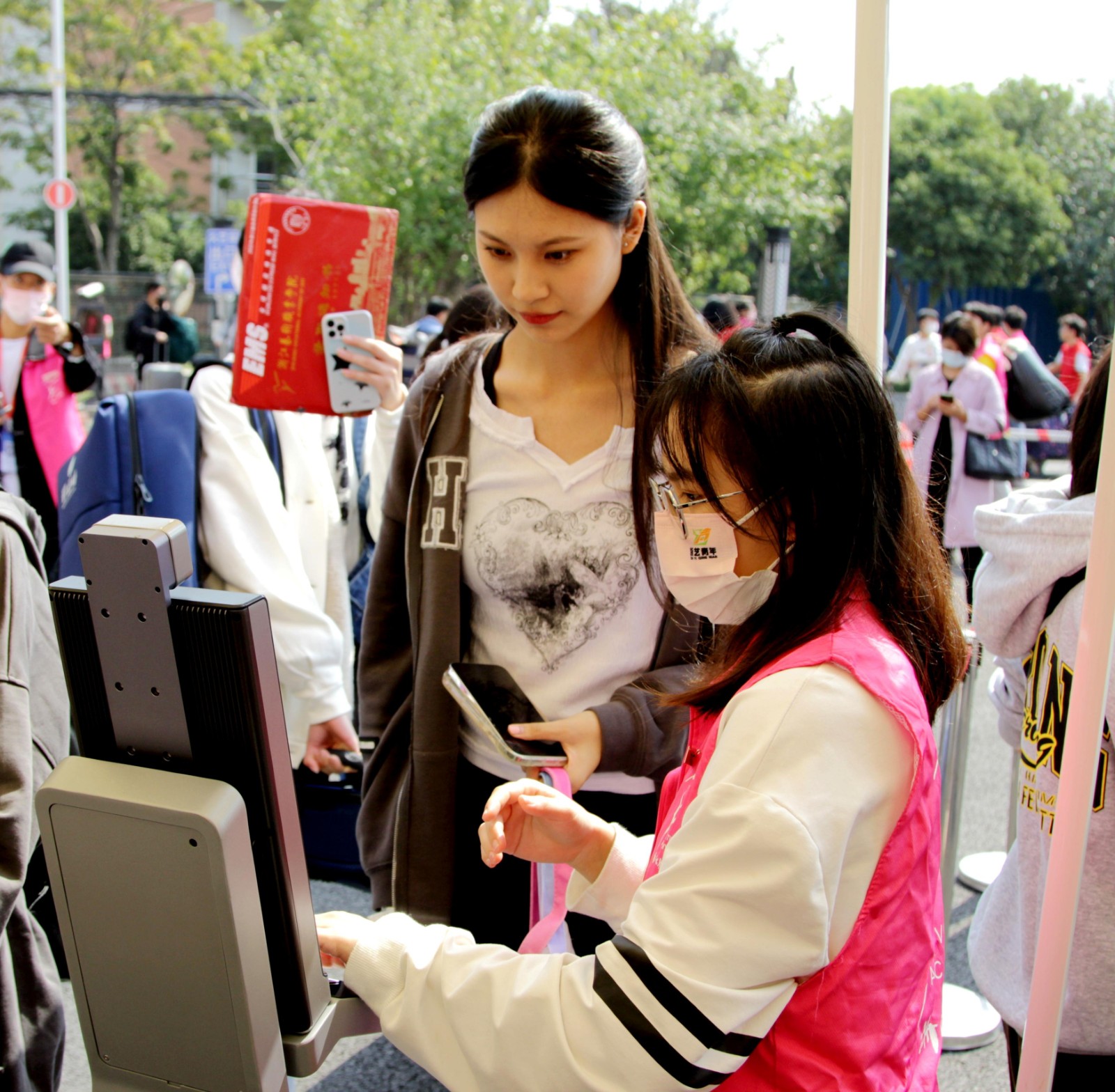 志愿者是報(bào)到現(xiàn)場(chǎng)的一道亮麗風(fēng)景線,搬運(yùn)行李,指引道路,掃碼測(cè)溫,為新生拍照,現(xiàn)場(chǎng)唱歌營(yíng)造氣氛,志愿者們不僅為新生提供全方位服務(wù),而且多才多藝,讓新生們開開心心報(bào)到。行李存放處、擺渡車旁隨處可見志愿者的身影,志愿者的給力讓報(bào)到工作有條不紊地進(jìn)行。