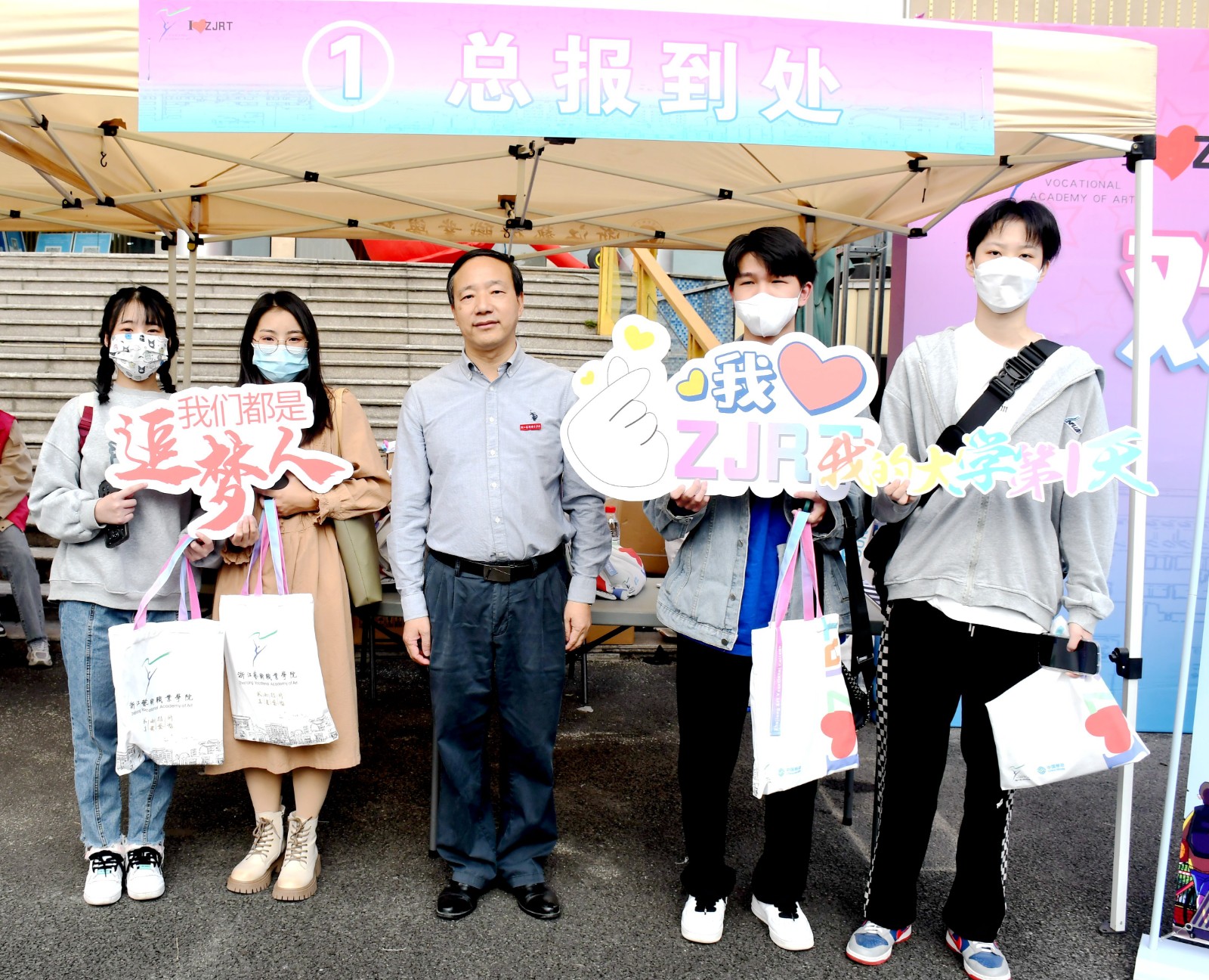 結(jié)合新生報(bào)到,學(xué)校舉行第十期書記校長(zhǎng)有約活動(dòng)。浙藝黨委書記薛亮,院長(zhǎng)、黨委副書記黃杭娟,黨委副書記夏開堂,黨委委員、副院長(zhǎng)沈軍甫來到報(bào)到現(xiàn)場(chǎng),對(duì)工作人員表示慰問,為新生發(fā)放新生大禮包,為到來的新生送上祝福,加油鼓勁。