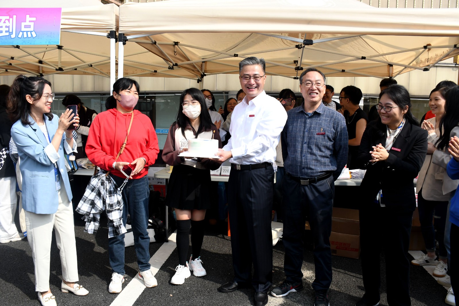 學(xué)校為報(bào)到當(dāng)天生日的新同學(xué)準(zhǔn)備了生日慶祝活動(dòng),校領(lǐng)導(dǎo)為新生遞上生日蛋糕,送上生日祝福。志愿者們拿著話筒,跟著音樂節(jié)奏為“壽星”唱起生日歌,現(xiàn)場(chǎng)暖心滿滿。戲劇影視學(xué)院2022級(jí)影視編導(dǎo)班的李熠恬是當(dāng)天生日新生中的一員。“這個(gè)驚喜來得在我意料之外,非常開心,非常感謝學(xué)校精心準(zhǔn)備的生日慶祝活動(dòng)。”李熠恬說道。