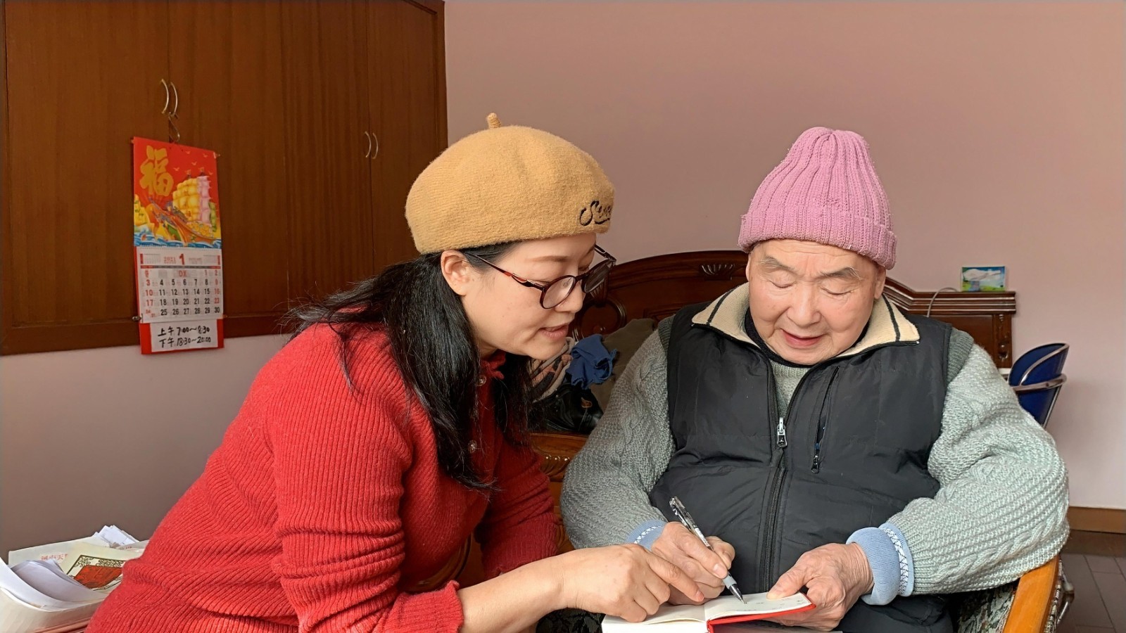 ▲與越劇語(yǔ)音專家盧時(shí)俊請(qǐng)教、探討語(yǔ)音問(wèn)題