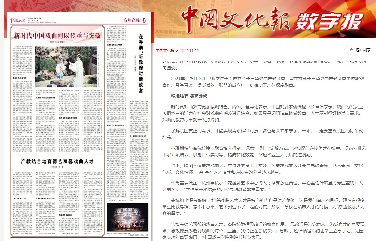 中國(guó)文化報(bào):產(chǎn)教結(jié)合培育德藝雙馨戲曲人才