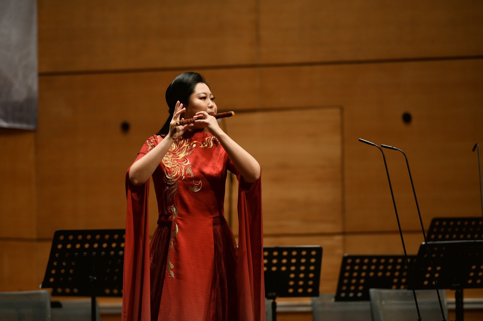 音樂會共有七首風格迥異的曲目,既有清新脫俗的“新派”作品《小放牛》和婉約細膩的南派作品《幽蘭逢春》,又有豪邁鏗鏘的北派作品《秦川情》和富有山東地域特色的《走進快活嶺》,還有富有傳統(tǒng)韻味和時代特色的作品《春風雨夜情》和《胡旋舞》。值得一提的是,常軼偉演奏了恩師戴亞教授創(chuàng)作的北派笛子作品《山野情》。