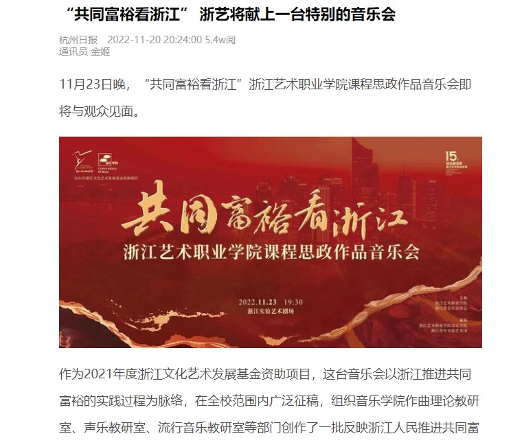 杭州日報:“共同富裕看浙江” 浙藝將獻(xiàn)上一臺特別的音樂會