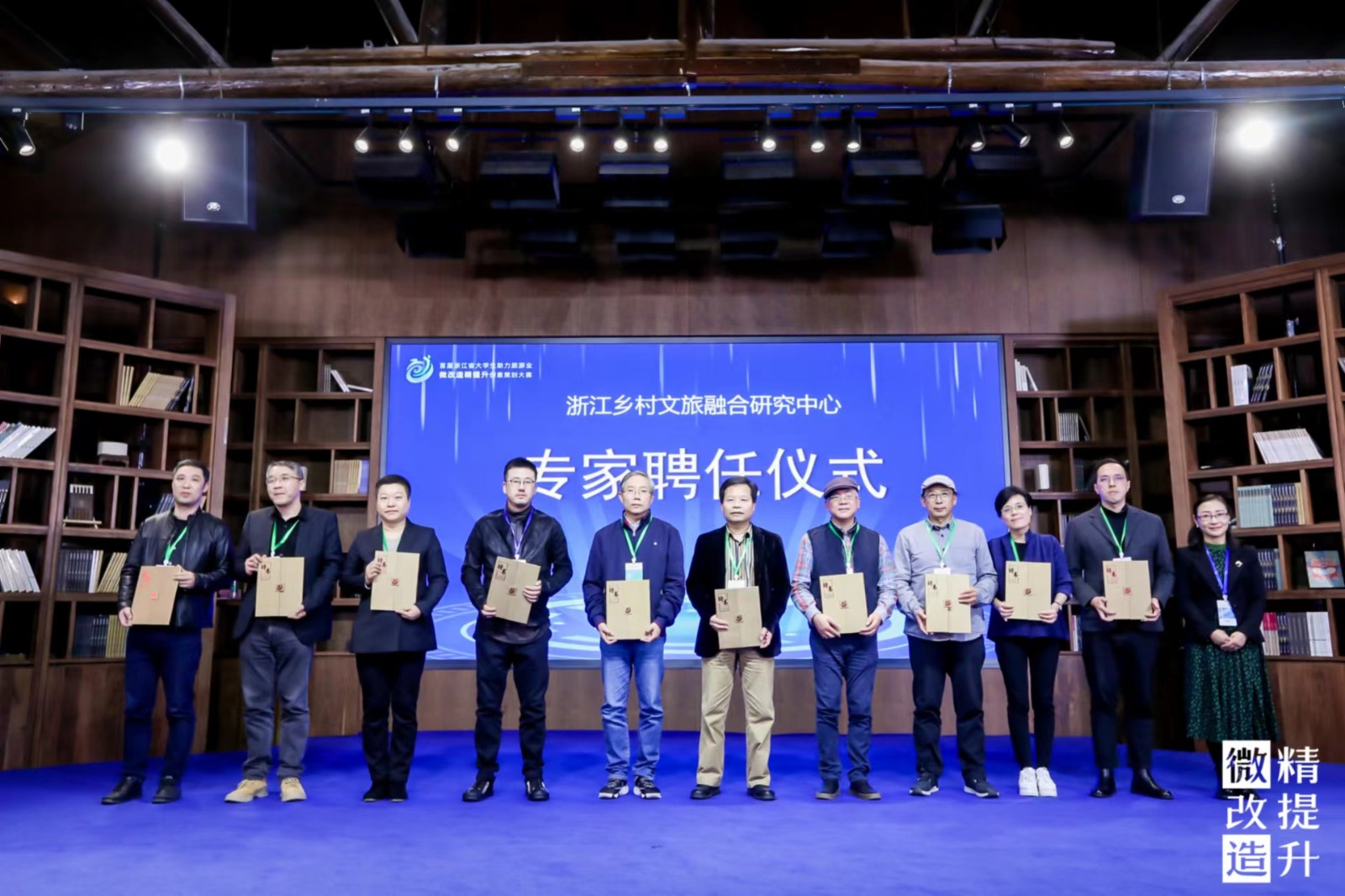 典禮期間,黃杭娟為浙江鄉(xiāng)村文旅融合研究中心專家頒發(fā)聘書。領(lǐng)導(dǎo)嘉賓共同啟動(dòng)第二屆浙江省大學(xué)生助力旅游業(yè)“微改造、精提升”創(chuàng)意策劃大賽。