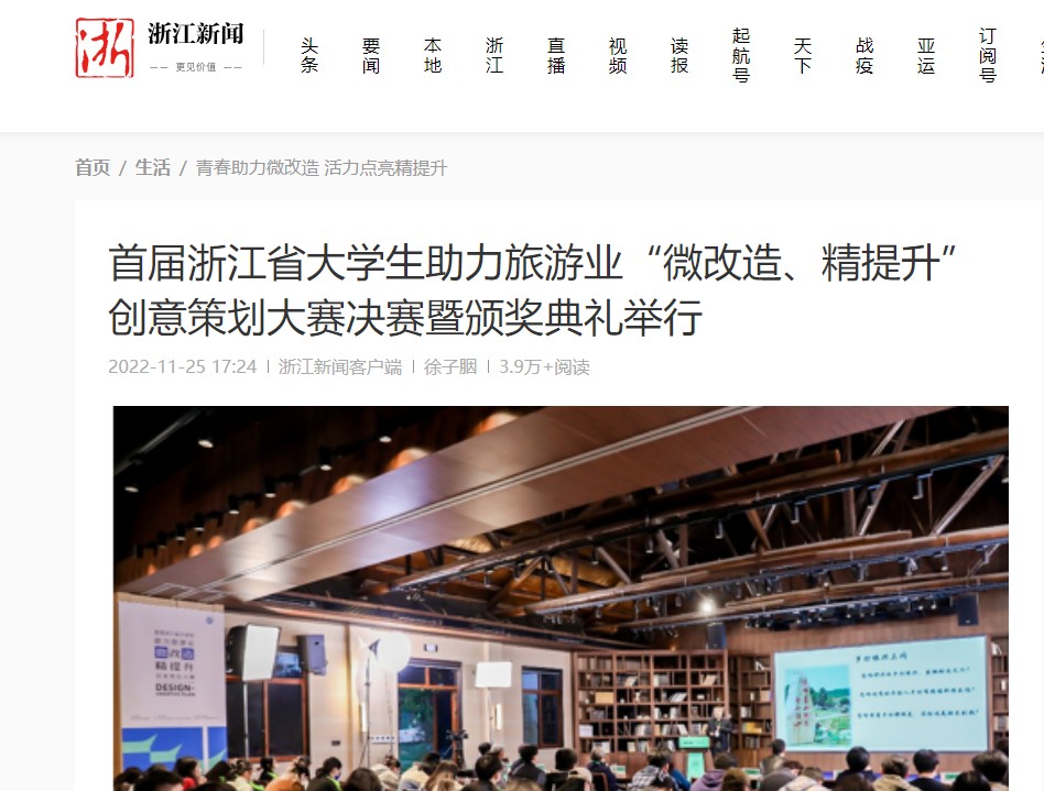 浙江新聞:首屆浙江省大學生助力旅游業(yè)“微改造、精提升”創(chuàng)意策劃大賽決賽暨頒獎典禮舉行