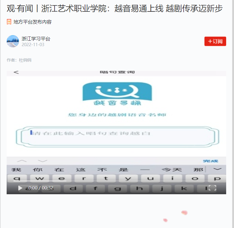 學(xué)習(xí)強(qiáng)國(guó)浙江平臺(tái):觀·有聞丨浙江藝術(shù)職業(yè)學(xué)院:越音易通上線 越劇傳承邁新步