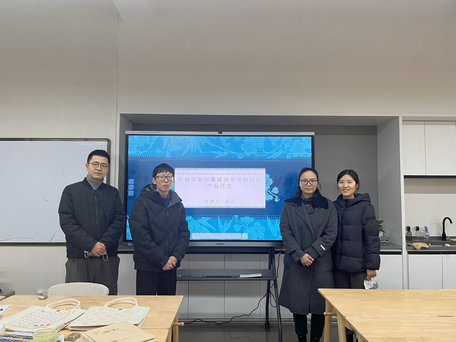 此次講座為“傳統(tǒng)印染方向的紡織產(chǎn)品開發(fā)研究團隊”系列講座之一,團隊由胡錦霞、李旭晨、高迅、葉峰泉組成。項目的研究團隊在帶領(lǐng)手工藝人將傳統(tǒng)雕刻印染與現(xiàn)代紡織產(chǎn)品設(shè)計進行創(chuàng)新組合,在將雕版印染運用于現(xiàn)代的紡織品多樣性開發(fā)中,在新時代創(chuàng)新設(shè)計的背景下,弘揚工匠精神。在弘揚傳統(tǒng)文化的基礎(chǔ)上,建立同學(xué)們的文化自信,在見證文化的積淀和時代的發(fā)展的同時,增強了同學(xué)們的民族自豪感和民族凝聚力。通過此次雕版印染講座,希望同學(xué)們可以發(fā)揚中華優(yōu)秀傳統(tǒng)文化,讓傳統(tǒng)技藝通過新的設(shè)計,煥發(fā)出新的生命力,在借此提升文化修養(yǎng)的同時拓展新思維新思路,為中國傳統(tǒng)文化繼承與發(fā)展貢獻自身的力量。