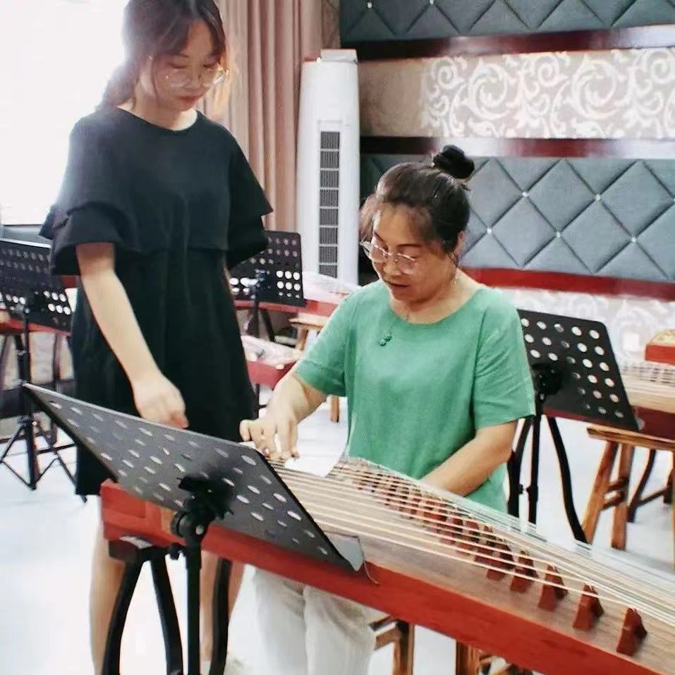 徐冰昕暑期指導小朋友練毛筆字、指導藝術愛好者彈古箏