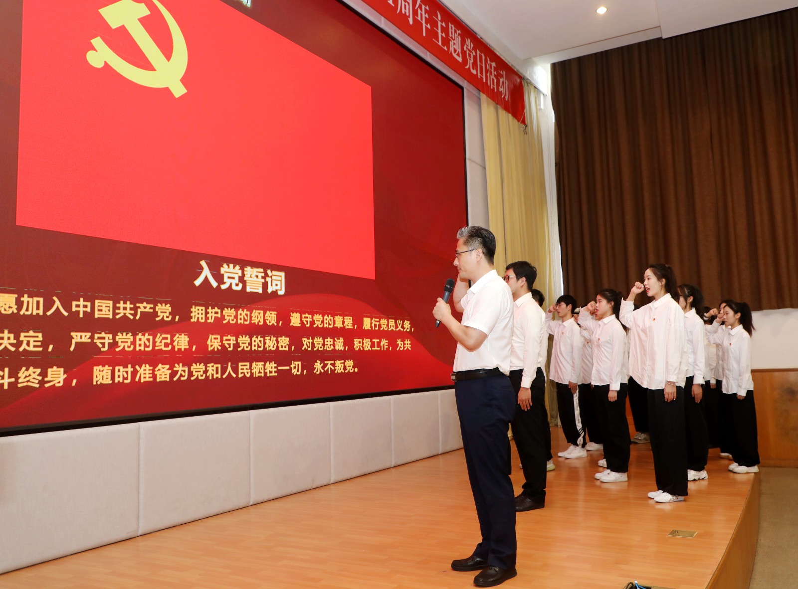 “我志愿加入中國(guó)共產(chǎn)黨……”7月1日下午,校黨委書記薛亮領(lǐng)誓,學(xué)校師生黨員右手握拳,以熾熱的感情面向黨旗宣讀入黨誓詞,向黨作出莊嚴(yán)承諾。