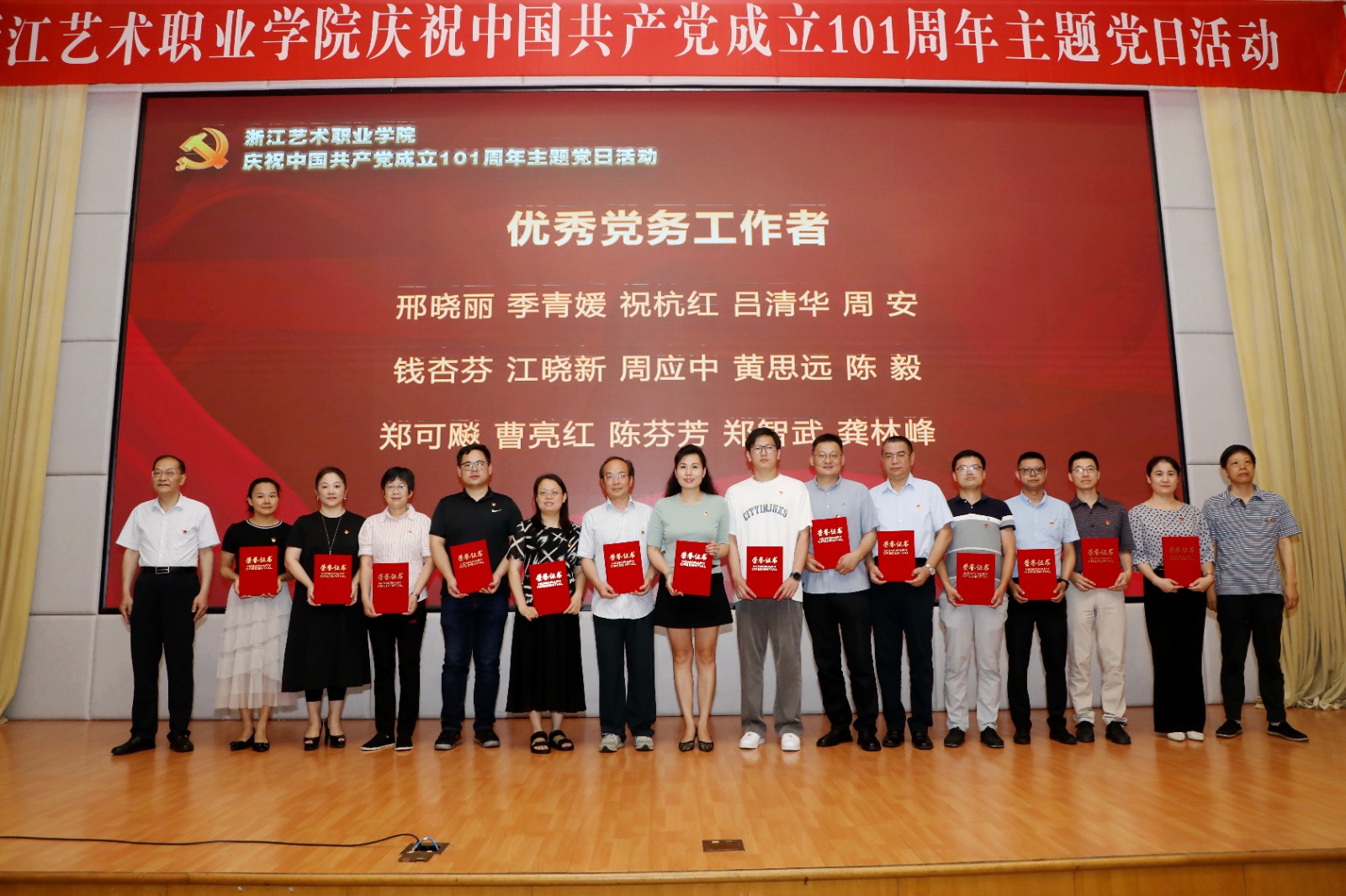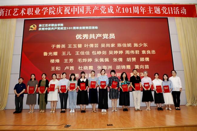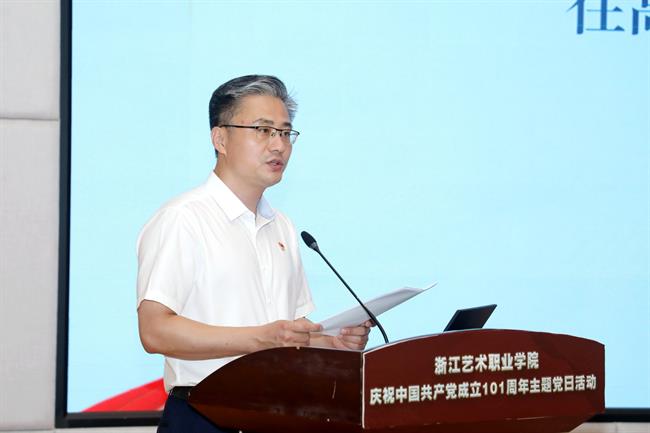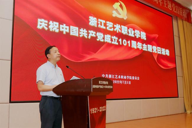 為慶祝中國(guó)共產(chǎn)黨成立101周年,回顧黨的光輝歷程,謳歌黨的豐功偉績(jī),賡續(xù)紅色血脈,浙江藝術(shù)職業(yè)學(xué)院在學(xué)校圖信報(bào)告廳隆重舉行慶祝中國(guó)共產(chǎn)黨成立101周年主題黨日活動(dòng)。校黨委班子成員,各黨總支、直屬黨支部書記、副書記,全體中層干部、主管崗位人員,基層黨支部書記、組織員和師生黨員代表、學(xué)校“兩優(yōu)一先”受表彰對(duì)象、2022年發(fā)展的新黨員代表參加活動(dòng)。校黨委書記薛亮作省十五次黨代會(huì)精神宣講,院長(zhǎng)、黨委副書記黃杭娟宣讀表彰名單,校黨委副書記夏開(kāi)堂主持活動(dòng)。