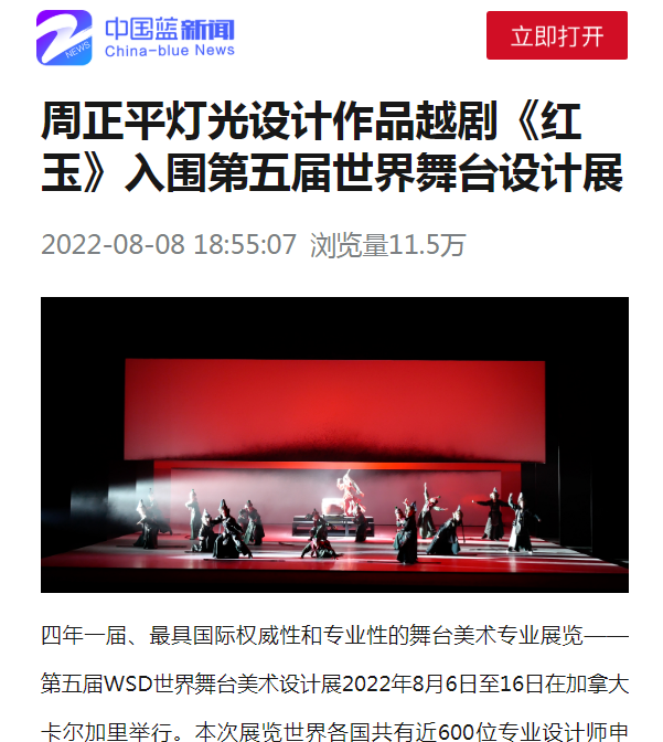 中國藍(lán)新聞:周正平燈光設(shè)計(jì)作品越劇《紅玉》入圍第五屆世界舞臺設(shè)計(jì)展