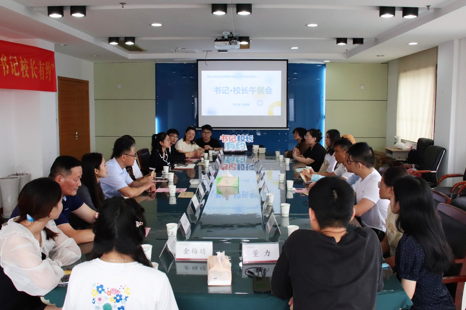 9月28日,書記校長(zhǎng)有約活動(dòng)在改造一新的浙江藝術(shù)職業(yè)學(xué)院東冠校區(qū)舉行,校黨委書記薛亮、院長(zhǎng)黃杭娟、校黨委副書記夏開(kāi)堂、副院長(zhǎng)沈軍甫和學(xué)生代表們共進(jìn)午餐,共話未來(lái)。學(xué)生處、校團(tuán)委、東冠綜合辦等相關(guān)老師一同參加。