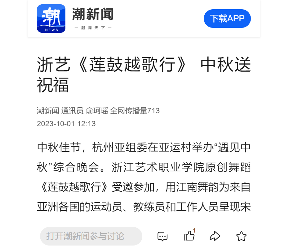 潮新聞:浙藝《蓮鼓越歌行》 中秋送祝福