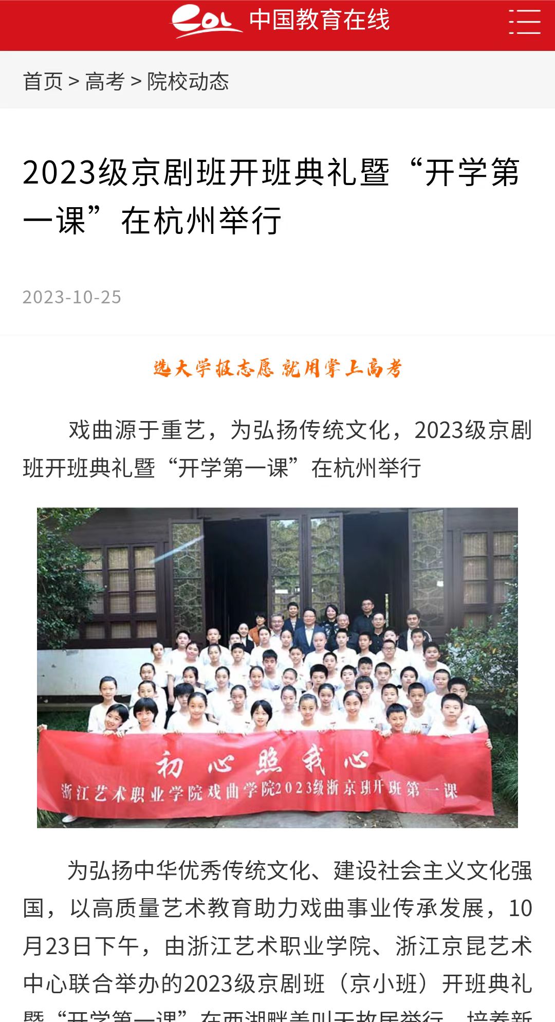 中國教育在線:2023級京劇班開班典禮暨“開學(xué)第一課”在杭州舉行