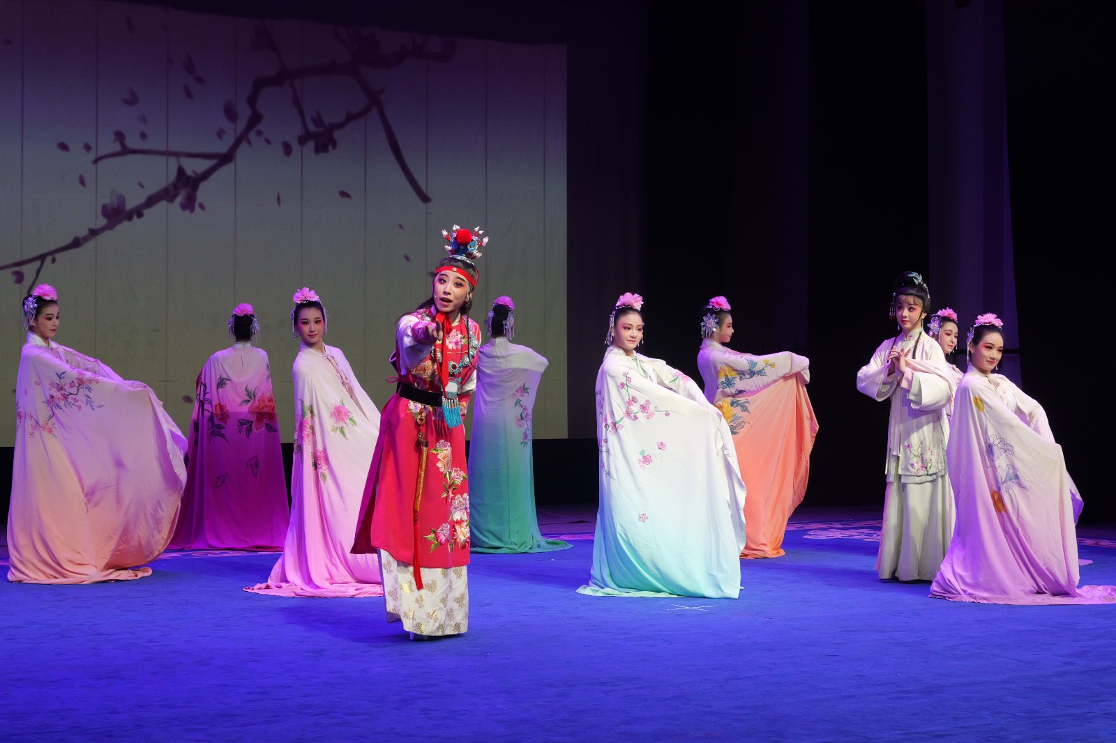 專業(yè)第一課在戲曲舞蹈《百花爭(zhēng)妍》中緩緩拉幕,寓意梨園新聲花香滿園,繪就了一幅春意盎然、繁花似錦、欣欣向榮的美麗畫卷。