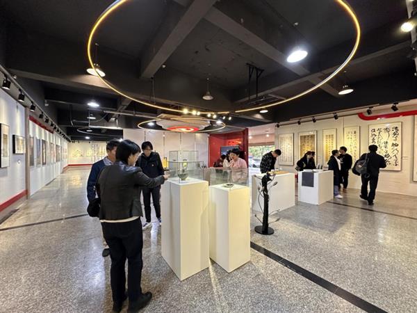 與會(huì)人員一同觀看了學(xué)校和設(shè)計(jì)學(xué)院宣傳片,并參觀了學(xué)校“凝心聚力揚(yáng)正氣·勤廉干事樹清風(fēng)”廉潔文化藝術(shù)作品展。