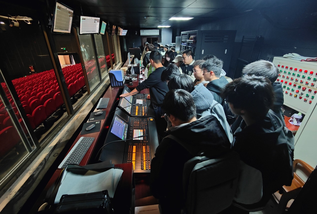 同學(xué)們在音響老師的帶領(lǐng)下學(xué)習(xí)調(diào)音設(shè)備的使用方法,了解多樣化的調(diào)音技巧,領(lǐng)略不同分貝的聲音在舞臺上的呈現(xiàn)效果,感受全景聲的魅力。