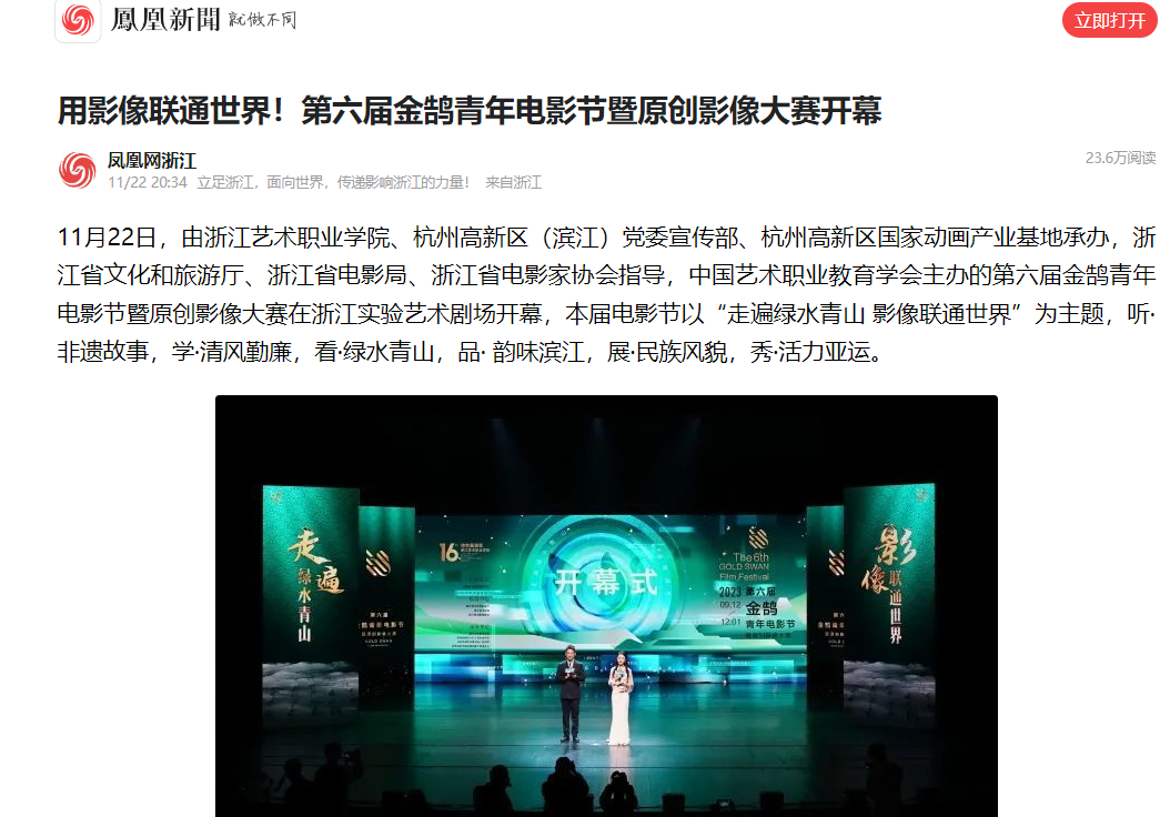 鳳凰新聞:用影像聯(lián)通世界!第六屆金鵠青年電影節(jié)暨原創(chuàng)影像大賽開幕