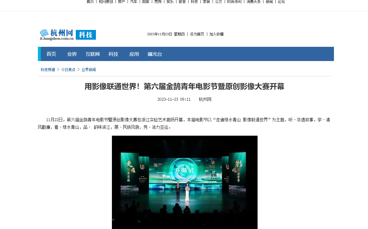 杭州網(wǎng):用影像聯(lián)通世界!第六屆金鵠青年電影節(jié)暨原創(chuàng)影像大賽開(kāi)幕