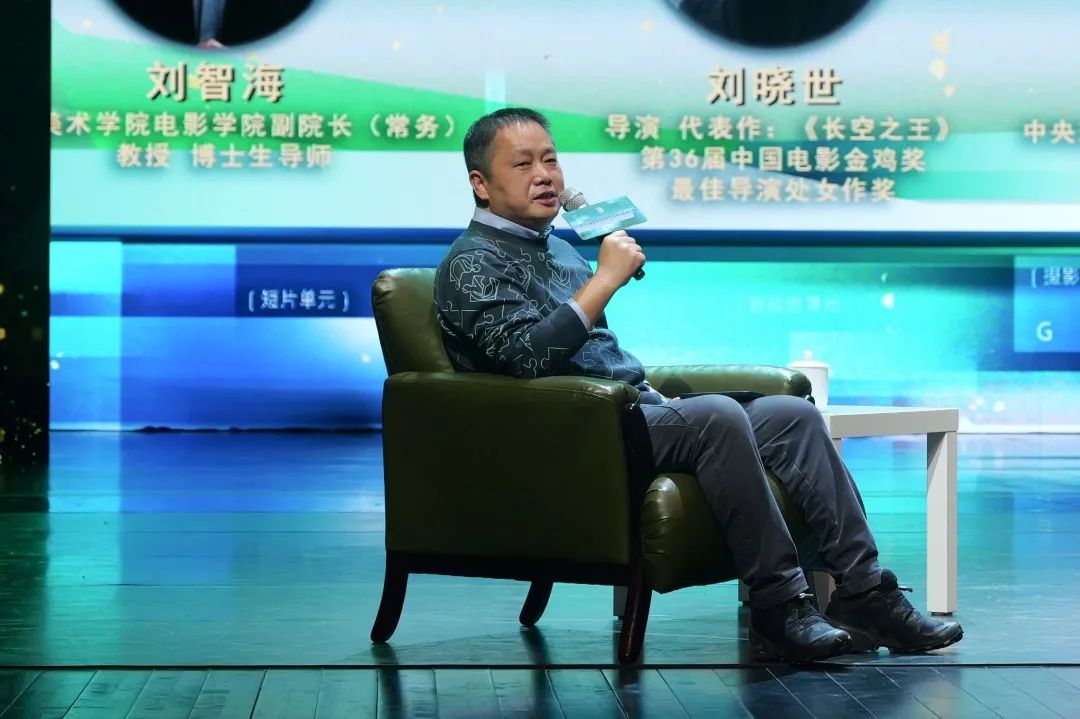 圓桌論壇由中國美術(shù)學(xué)院電影學(xué)院常務(wù)副院長、教授、博士生導(dǎo)師,中國電影家協(xié)會編劇教育委員會副會長,浙江省電影家協(xié)會主席團(tuán)委員劉智海主持。作為今天的主持人,他以風(fēng)趣的語言開場,向在場嘉賓提出了三個問題:電影導(dǎo)演的成長之路是怎么樣的?每個導(dǎo)演如何建構(gòu)自己的電影美學(xué)?未來有什么電影規(guī)劃?