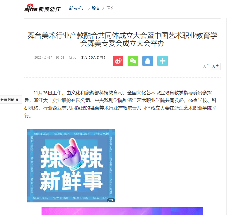 新浪浙江:舞臺美術(shù)行業(yè)產(chǎn)教融合共同體成立大會暨中國藝術(shù)職業(yè)教育學(xué)會舞美專委會成立大會舉辦