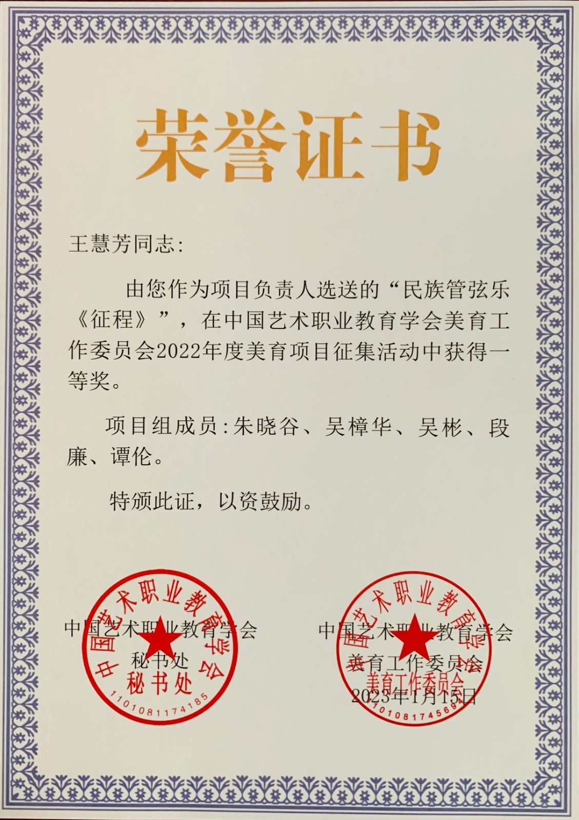 虎去兔來辭舊歲,歡歌笑語迎新春。新春佳節(jié)來臨之際,“中國藝術(shù)職業(yè)教育學(xué)會(huì)美育工作委員會(huì)2022年度美育項(xiàng)目”評(píng)審結(jié)果揭曉,我校推薦參評(píng)的民族管弦樂《征程》(項(xiàng)目負(fù)責(zé)人王慧芳)獲得個(gè)人獎(jiǎng)項(xiàng)唯一的一等獎(jiǎng),另有8個(gè)作品獲評(píng)優(yōu)秀項(xiàng)目,我校獲評(píng)“優(yōu)秀組織單位”。
