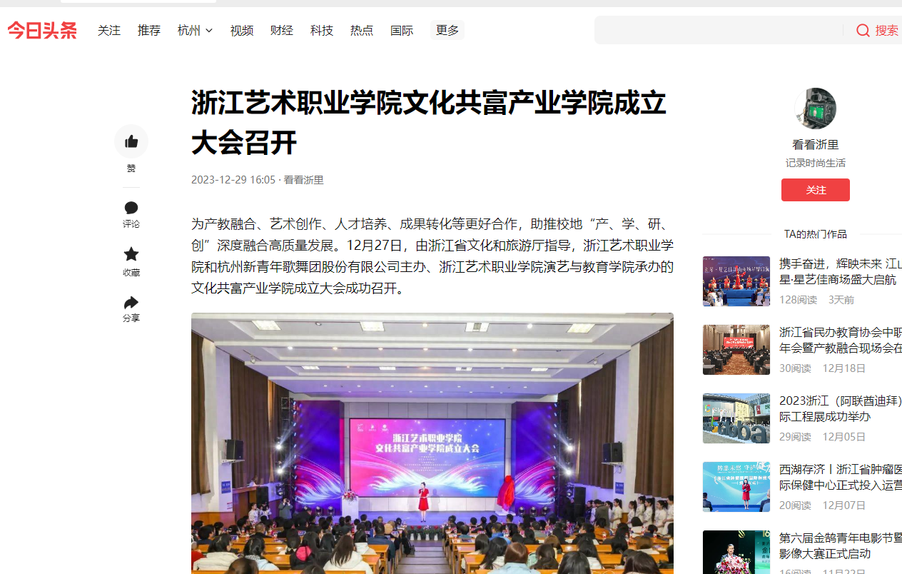今日頭條:浙江藝術(shù)職業(yè)學(xué)院文化共富產(chǎn)業(yè)學(xué)院成立大會(huì)召開