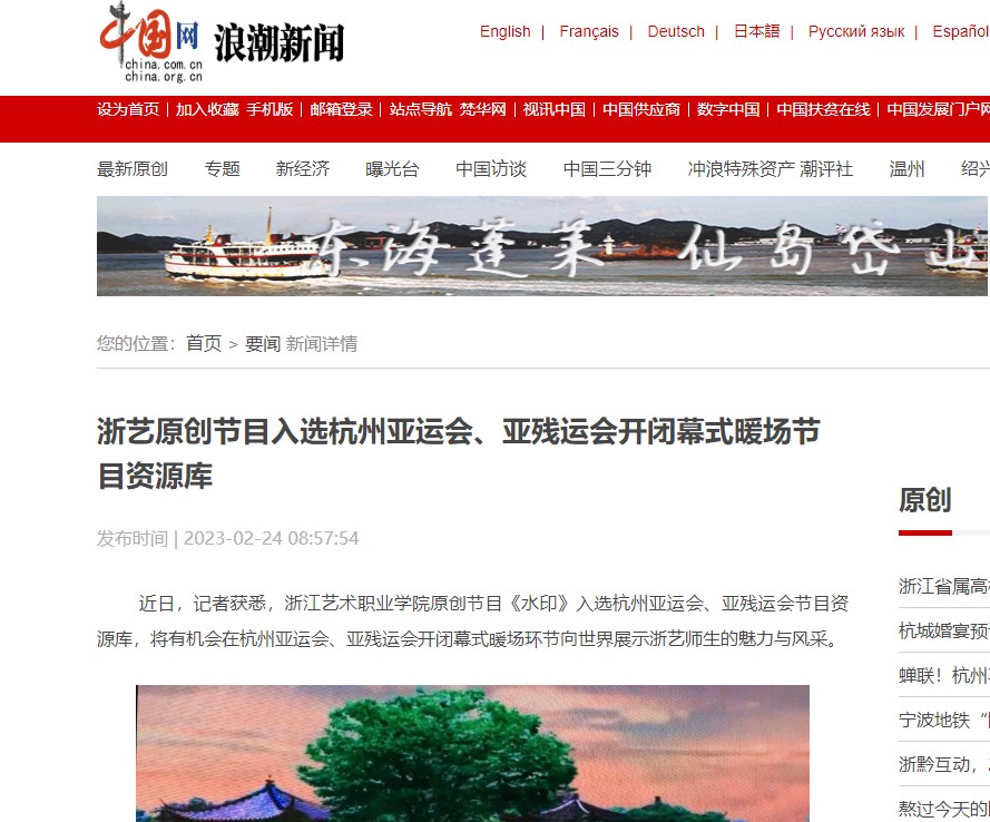 中國網(wǎng)浪潮新聞:浙藝原創(chuàng)節(jié)目入選杭州亞運(yùn)會、亞殘運(yùn)會開閉幕式暖場節(jié)目資源庫