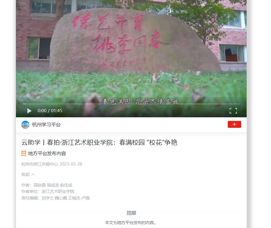 學(xué)習(xí)強國杭州平臺:云助學(xué)丨春拍·浙江藝術(shù)職業(yè)學(xué)院:春滿校園 “校花”爭艷