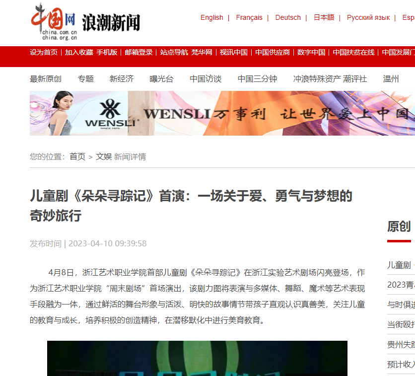 中國網(wǎng)浪潮新聞:兒童劇《朵朵尋蹤記》首演:一場關于愛、勇氣與夢想的奇妙旅行