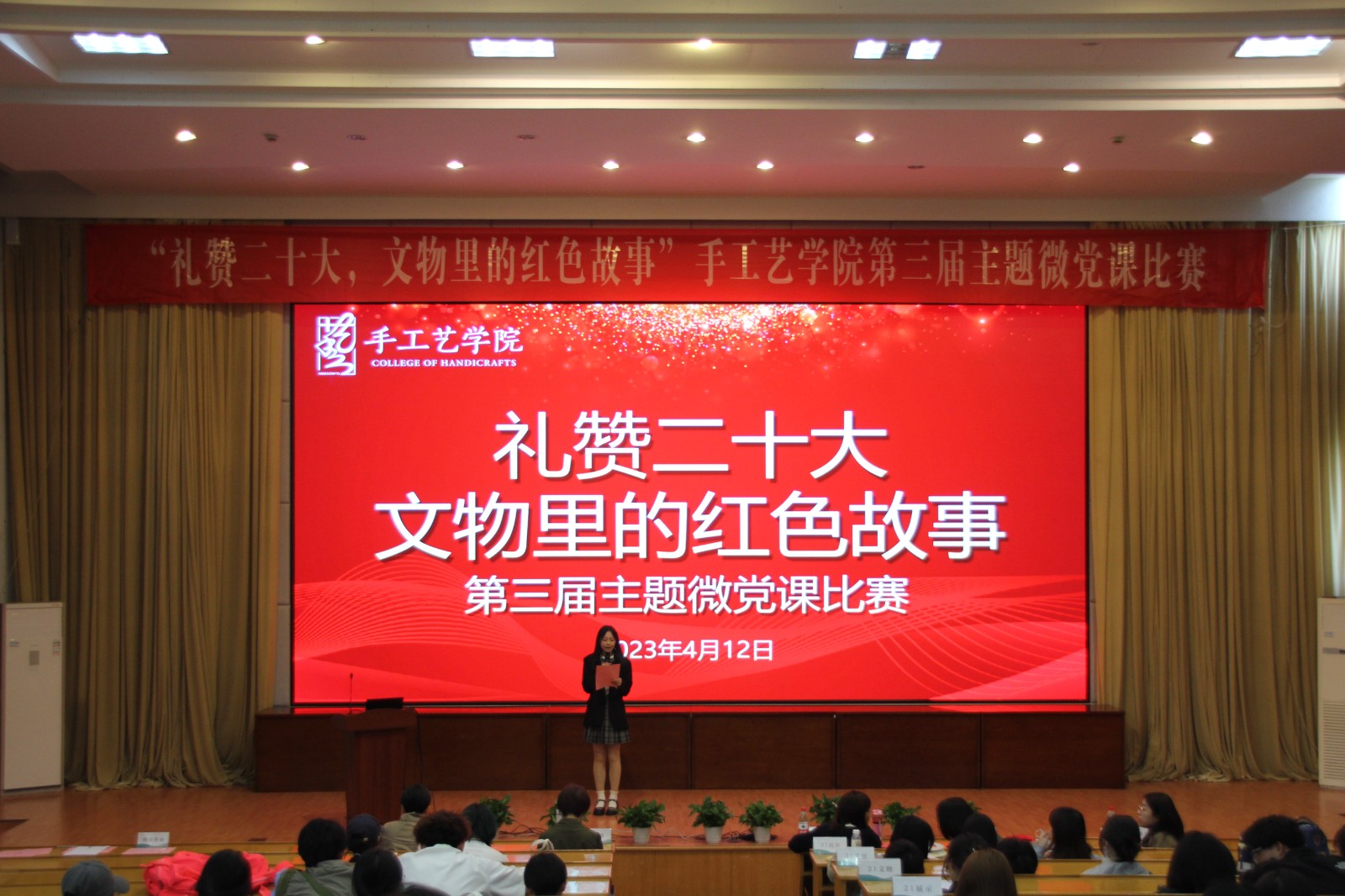 為學習貫徹落實黨的二十大精神,用故事承載手藝精神,以文物講述紅色記憶,4月12日中午,手工藝學院在圖信報告廳舉辦“禮贊二十大,文物里的紅色故事”第三屆主題微黨課比賽。來自不同專業(yè)的十名參賽選手為大家?guī)砹司实奈Ⅻh課。