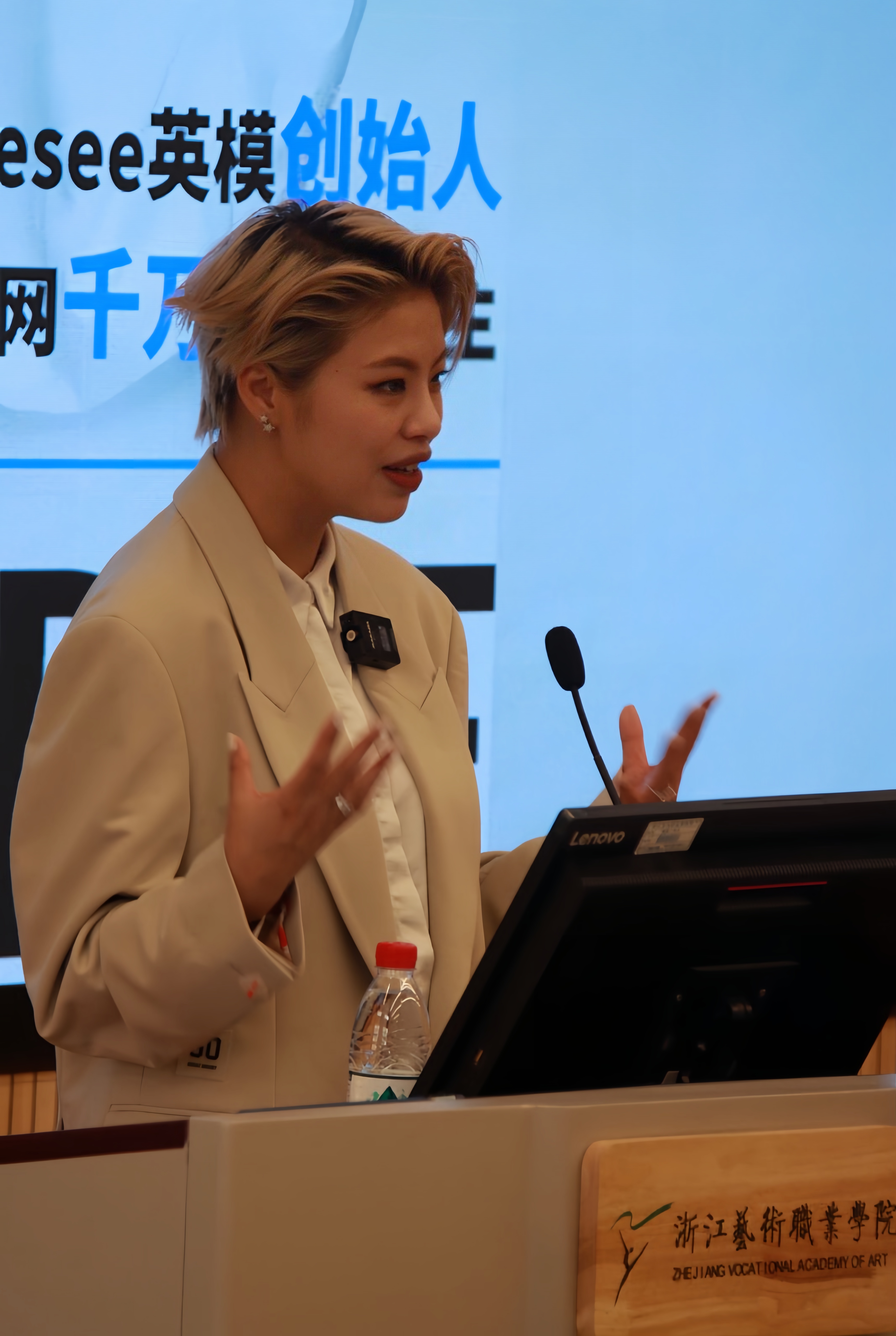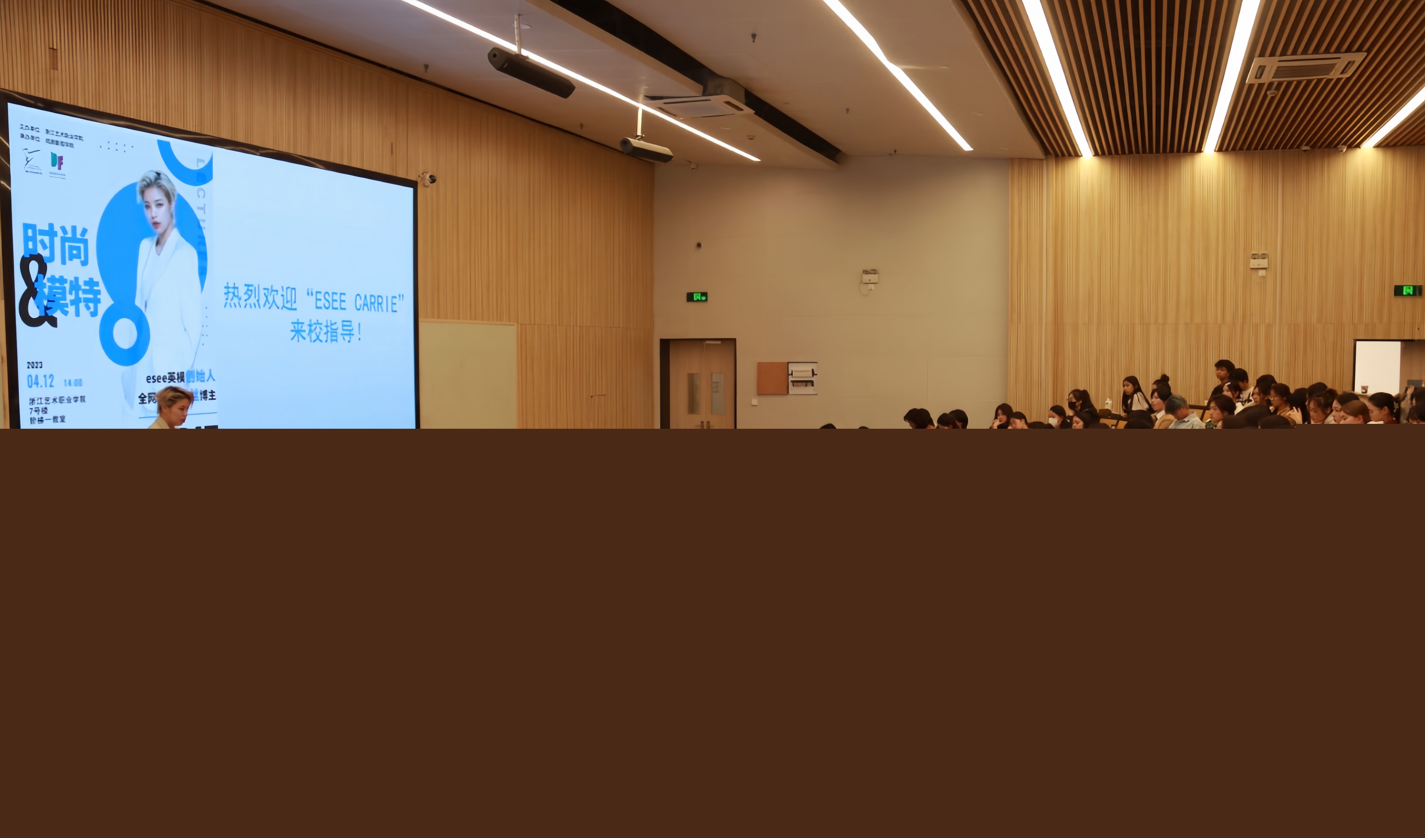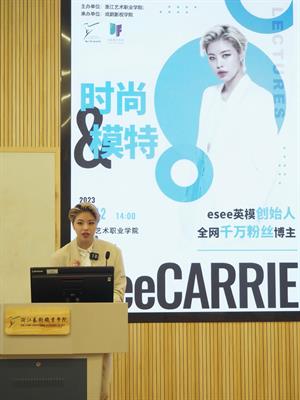 4月12日下午,浙江藝術(shù)職業(yè)學院戲劇影視學院時尚表演與傳播專業(yè)邀請上海esee英模創(chuàng)始人兼首席經(jīng)紀人、全網(wǎng)千萬粉絲博主Carrie,在階梯教室作題為“時尚&模特”的專業(yè)講座,時尚表演與傳播等專業(yè)學生參加,現(xiàn)場座無虛席,氣氛熱烈。