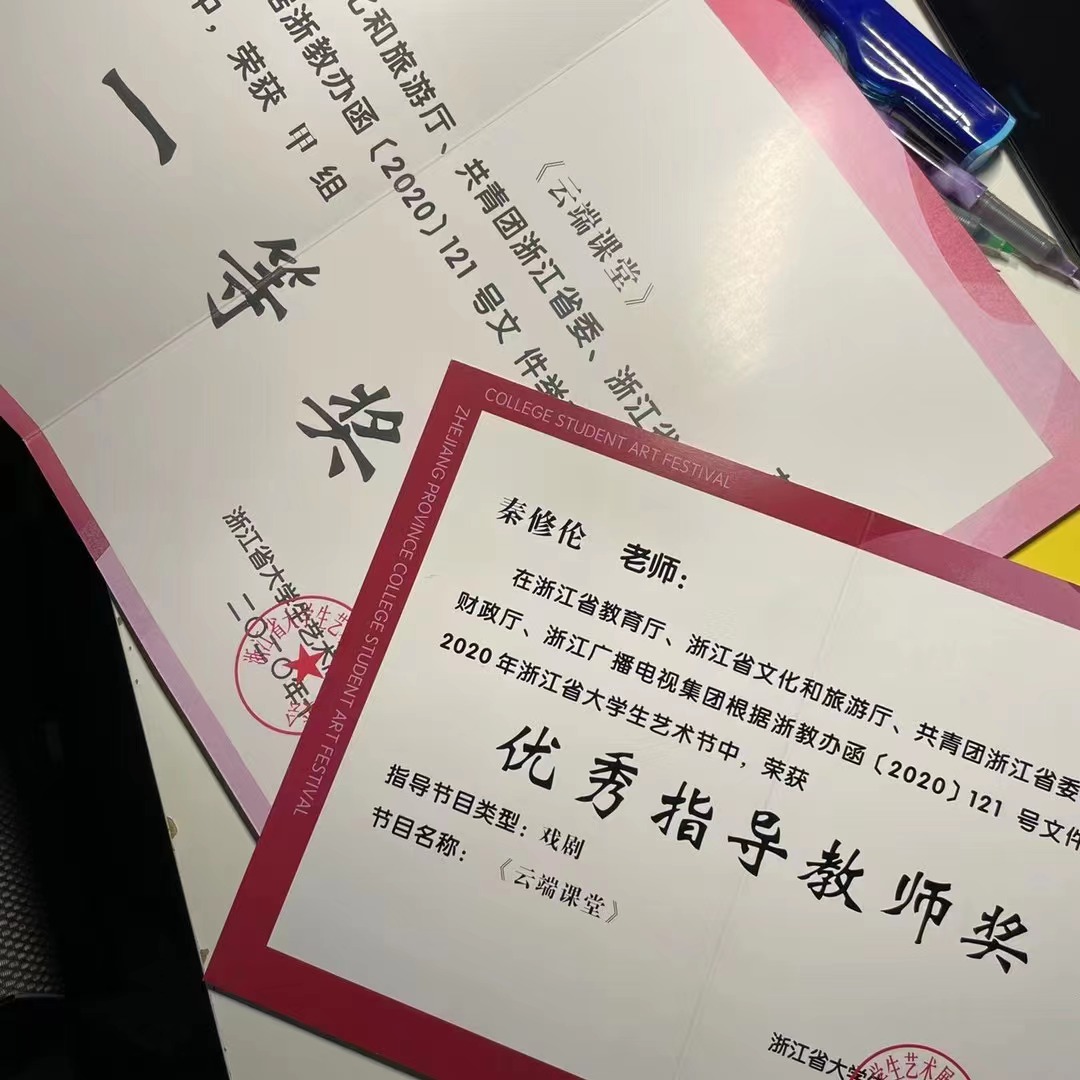 “舞臺(tái)是我夢(mèng)開(kāi)始的地方,每一個(gè)因?yàn)楹蛯W(xué)生一起編排、創(chuàng)作而放棄的周末、假期,都是值得的。”從老師們身上接過(guò)無(wú)限感動(dòng),秦修倫將這份感恩繼續(xù)傳下去。在擔(dān)任助教期間,他帶領(lǐng)學(xué)生們前往各地參演時(shí)裝周、浙江省大學(xué)生藝術(shù)節(jié)等活動(dòng),榮獲優(yōu)秀指導(dǎo)教師獎(jiǎng)。“在教學(xué)相長(zhǎng)中探尋藝術(shù)真諦,在服務(wù)人民中砥礪從藝初心”,這句話在秦修倫身上體現(xiàn)得淋漓盡致。他說(shuō):“浙藝戲劇影視學(xué)院賦予了我破釜沉舟的勇氣和實(shí)現(xiàn)夢(mèng)想的舞臺(tái),將這份勇氣與夢(mèng)想繼續(xù)在學(xué)弟學(xué)妹們身上延續(xù)下去,是我在浙藝最驕傲的事情之一。”