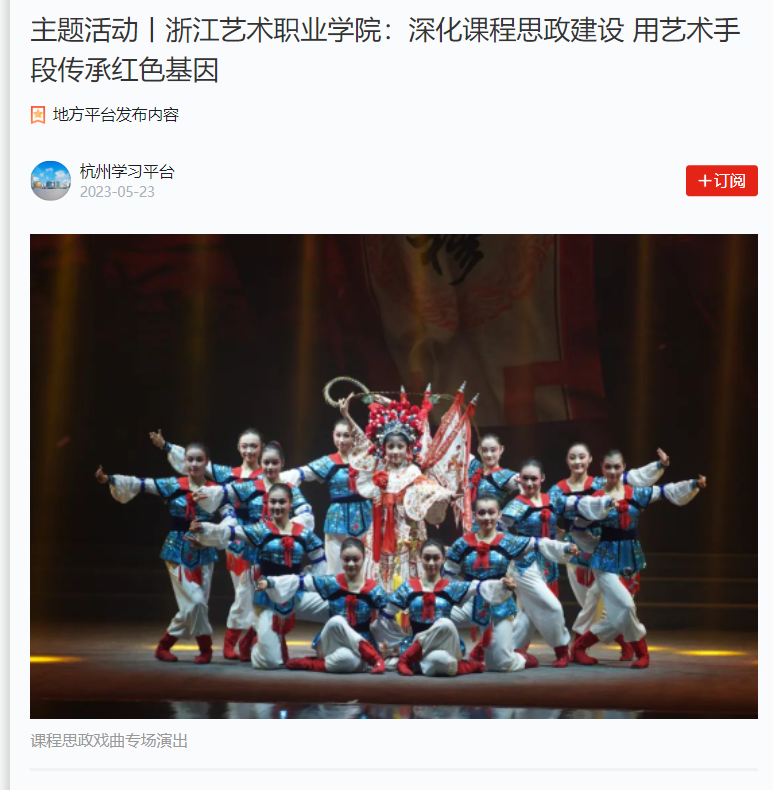 學(xué)習(xí)強國杭州平臺:主題活動丨浙江藝術(shù)職業(yè)學(xué)院:深化課程思政建設(shè) 用藝術(shù)手段傳承紅色基因