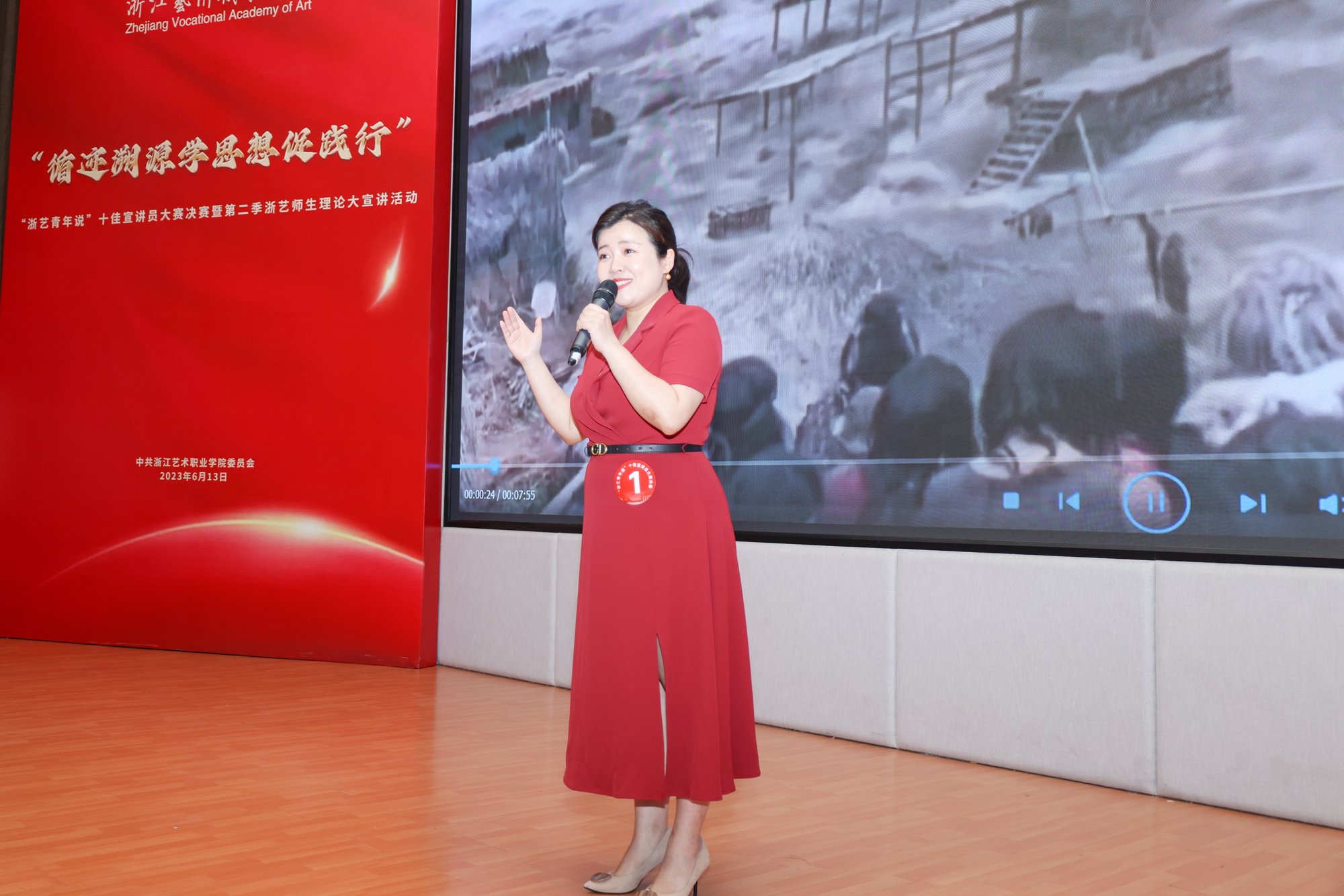 6月13日晚,“循跡溯源學(xué)思想促踐行”“浙藝青年說”十佳宣講員大賽決賽暨第二季浙藝師生理論大宣講活動在圖信中心報告廳舉行。校黨委委員、副院長沈軍甫,黨委委員、副院長支濤,黨委委員、宣傳部(統(tǒng)戰(zhàn)部)部長馬向東,相關(guān)職能部門和各二級學(xué)院負(fù)責(zé)人出席并擔(dān)任評委。各二級學(xué)院學(xué)生代表到場聽取宣講。