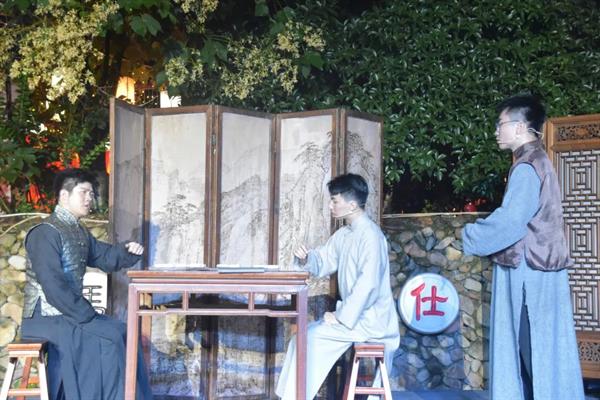 演藝與教育學院副院長、表演藝術專業(yè)帶頭人荊芳表示,“沉浸式”演出作為一種新穎的藝術形式,成為當今令人矚目的行業(yè)現(xiàn)象和文化景觀。本次校地合作項目從排練到演出時間緊,任務重,但在教學團隊的齊心協(xié)力下,每位教師一人擔當多職,體現(xiàn)了“一專多能、全面復合型”的教學團隊。到達騰蛟的這三天陰雨綿綿,同學們在雨天走臺、彩排,六場密集的演出,在這過程中,沒有一個同學叫苦喊累,面對觀眾反而更加全情投入。讓老師們很感動也很欣慰。同學們的行動詮釋了“戲比天大”的真正內(nèi)涵,更好的詮釋了“身上有功夫,心中有藝德”的教學理念。接下來我們會根據(jù)這一次的實戰(zhàn)進行總結(jié),更好地去深度探索在文旅融合背景下“沉浸式”演出的教學實踐模式。