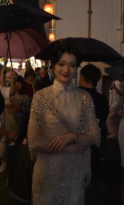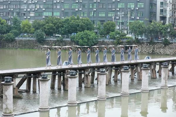 聽了葉欣然同學這一番話,飾演溪橋旗袍秀的汪施琦便忍不住也發(fā)表了自己的想法:“我們應該謹記蘇先生的教誨,好好學習專業(yè)知識、提高專業(yè)技能,為中國發(fā)展也能貢獻一份小小的力量。在來到這里之前我沒想過這座橋如此的窄,而且還要穿著高跟鞋,難免有些害怕。不過在老師的悉心指導下,我們克服了心理障礙,迅速進入狀態(tài)。走在第一個其實是有點壓力的,因為不能有差錯,步伐大小也要適中,但是現(xiàn)場的游客觀眾們都非常熱情,傳遞給我們很多動力,當看到一條條關于我們騰蛟演出的抖音刷屏的時候,滿足感、成就感、自豪感油然而生。”