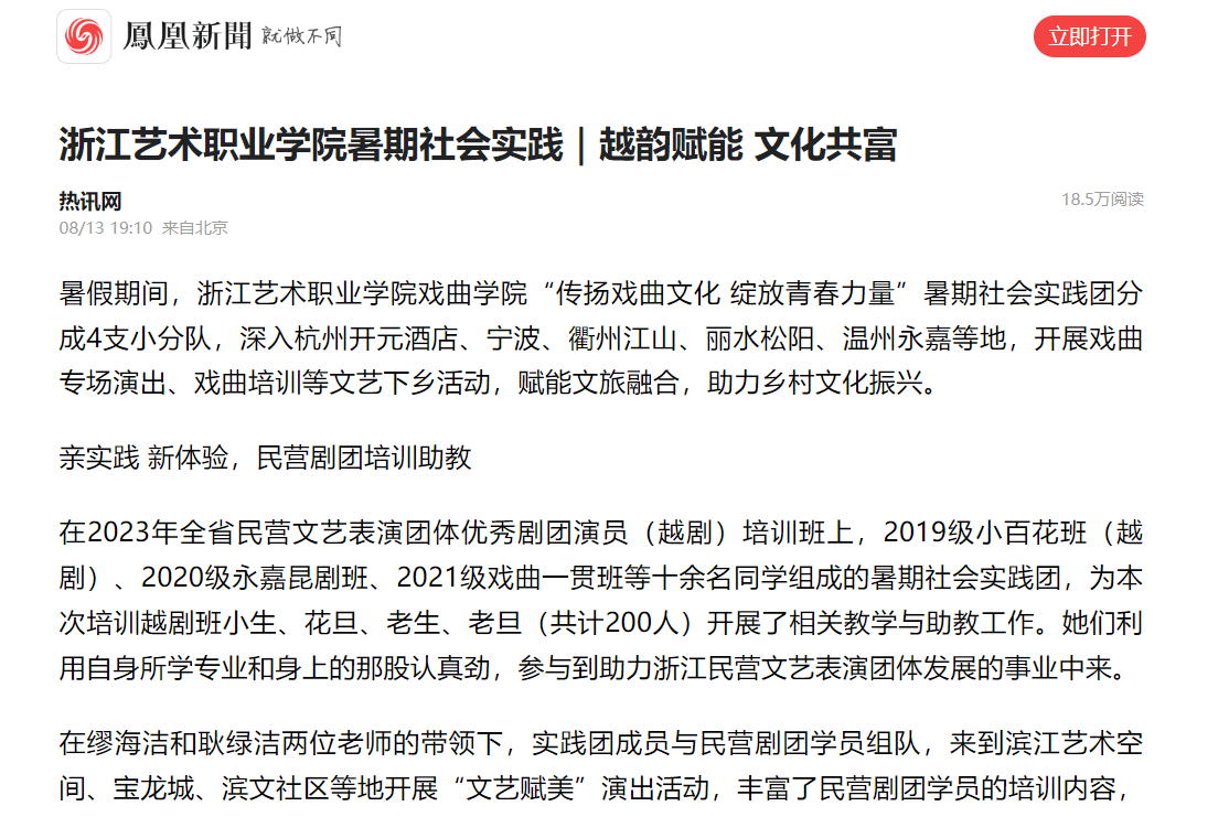 鳳凰新聞:浙江藝術職業(yè)學院暑期社會實踐|越韻賦能 文化共富