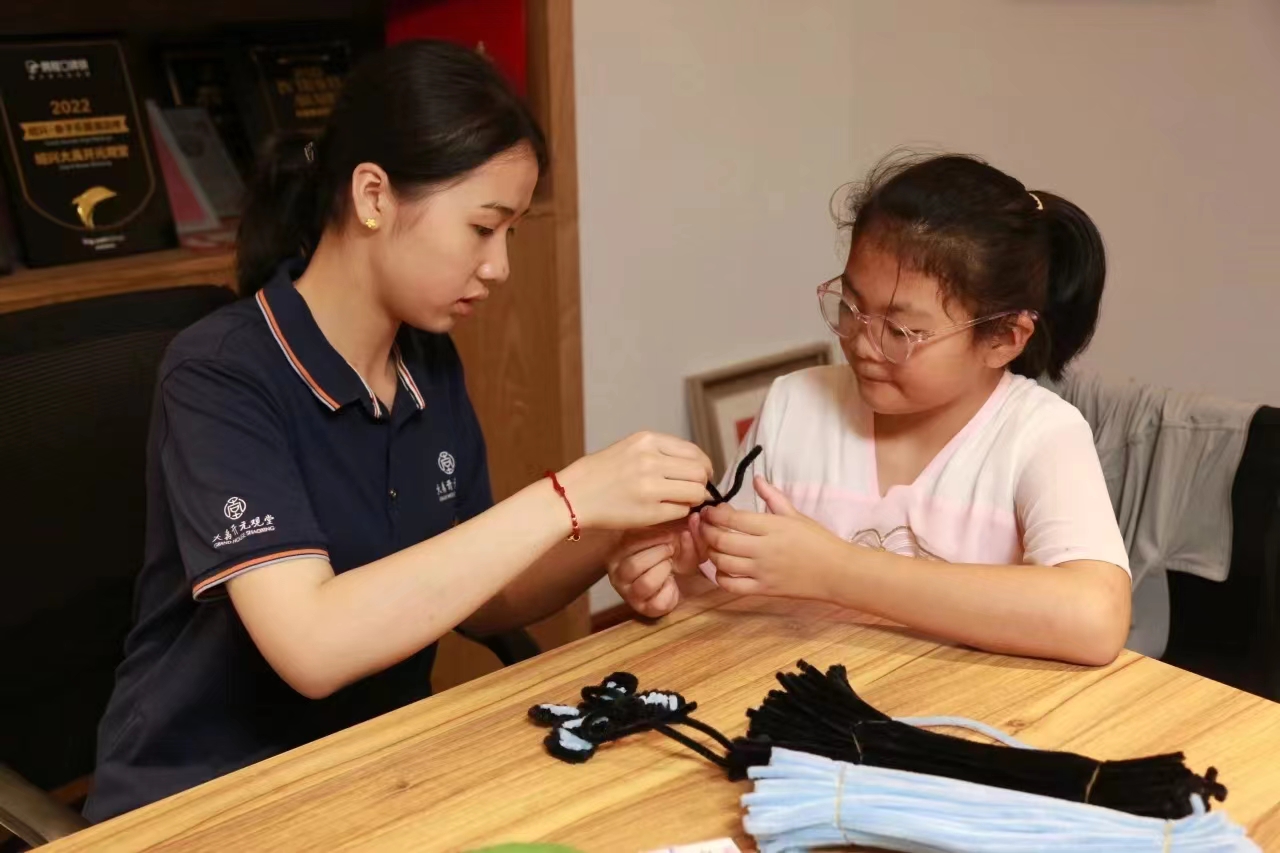 常駐文化體驗(yàn)官項(xiàng)目由2021級(jí)公共文化班的三名學(xué)生赴紹興大禹開(kāi)元觀堂開(kāi)展實(shí)踐,他們結(jié)合酒店深厚的文化底蘊(yùn),分別在文化活動(dòng)策劃、文化體驗(yàn)活動(dòng)組織開(kāi)展、兒童研學(xué)活動(dòng)組織開(kāi)展和員工培訓(xùn)等崗位進(jìn)行實(shí)踐。擔(dān)任文化體驗(yàn)官的胡嫣負(fù)責(zé)手作閣的日常運(yùn)營(yíng)、活動(dòng)策劃和執(zhí)行,其中書(shū)簽制作、扇面繪制等項(xiàng)目受到游客喜愛(ài)。擔(dān)任品牌干事的莫李雯負(fù)責(zé)文化活動(dòng)腳本設(shè)計(jì)、臺(tái)詞撰寫(xiě)和現(xiàn)場(chǎng)執(zhí)行等。擔(dān)任人力資源干事的俞佳怡負(fù)責(zé)大禹開(kāi)元觀堂HR公眾號(hào)宣傳,員工子女“小禹宙”暑假班課程并協(xié)助員工培訓(xùn)。