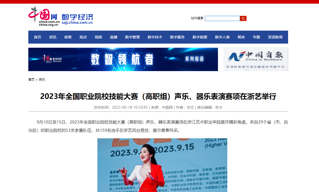 中國網(wǎng):2023年全國職業(yè)院校技能大賽(高職組)聲樂、器樂表演賽項(xiàng)在浙藝舉行