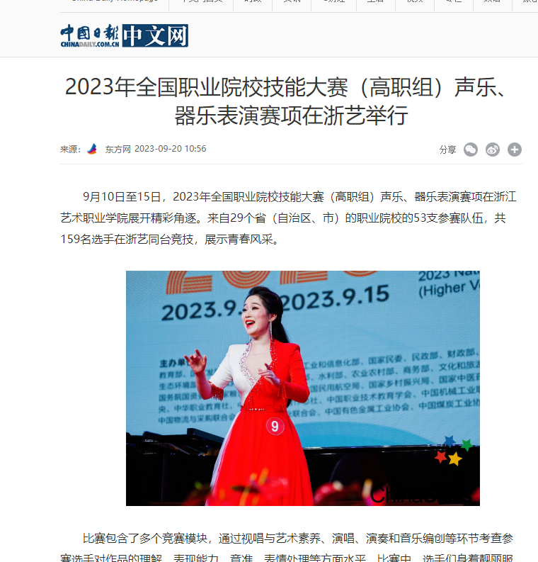 中國日?qǐng)?bào):2023年全國職業(yè)院校技能大賽(高職組)聲樂、器樂表演賽項(xiàng)在浙藝舉行